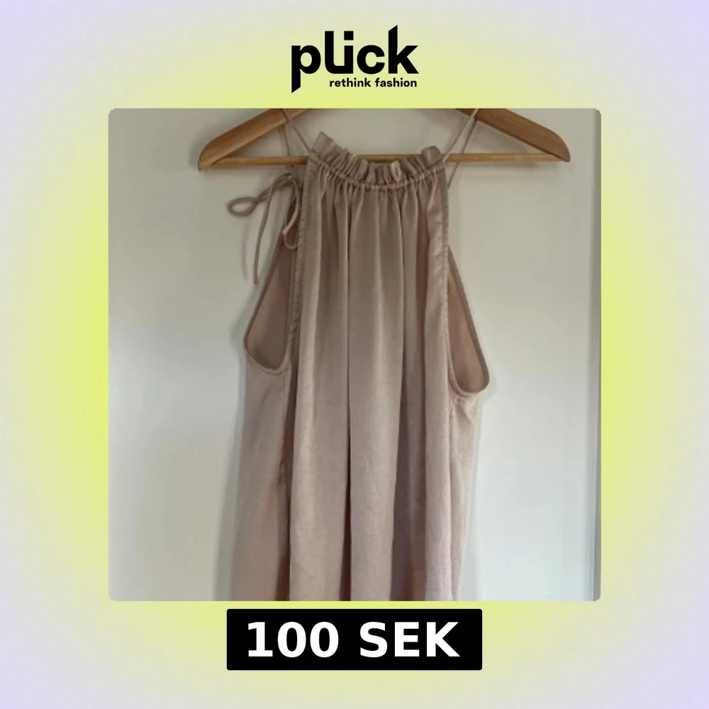 Säljer en beige topp från Neo Noir. Den är ärmlös med knytband vid axlarna och har en luftig passform.