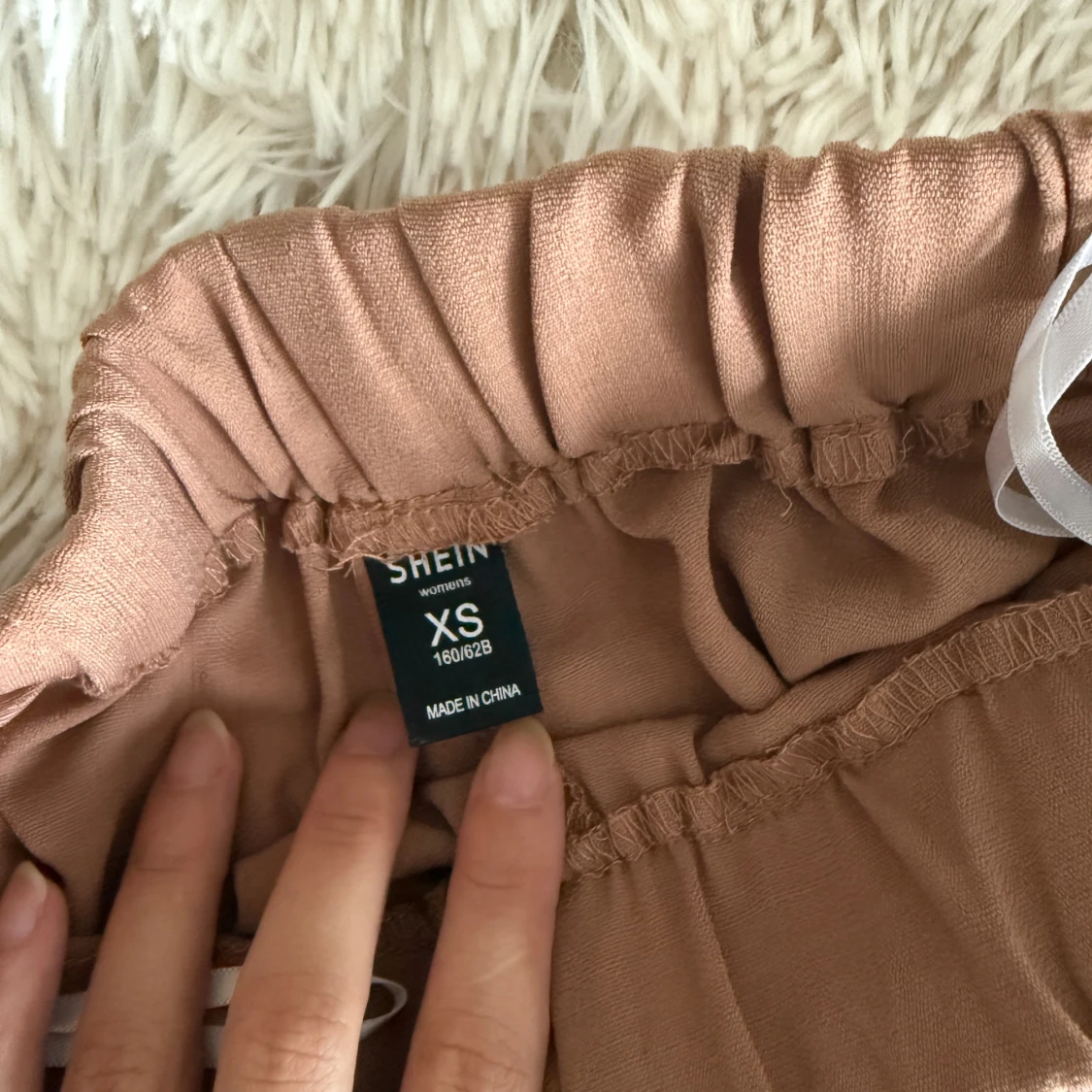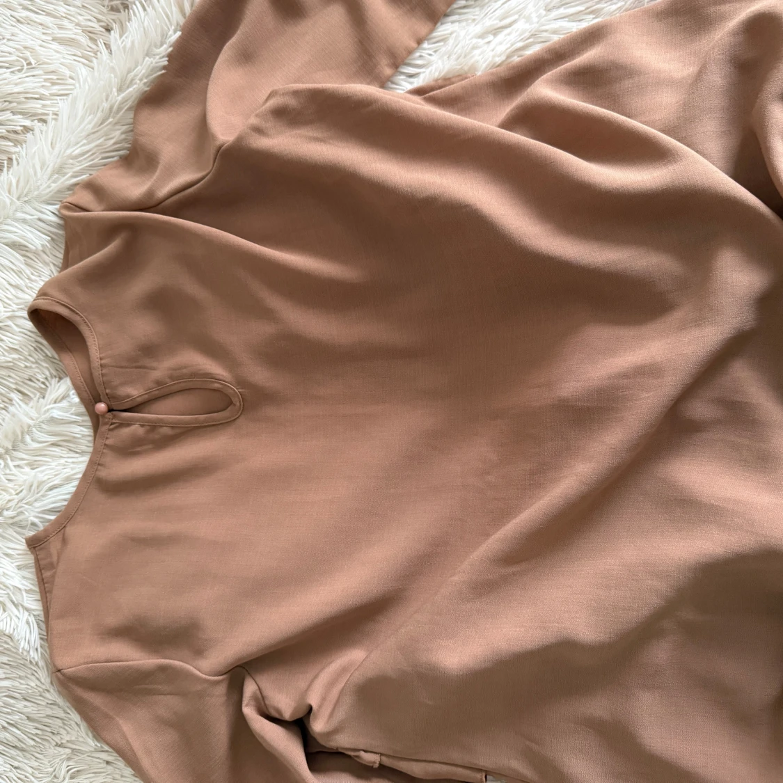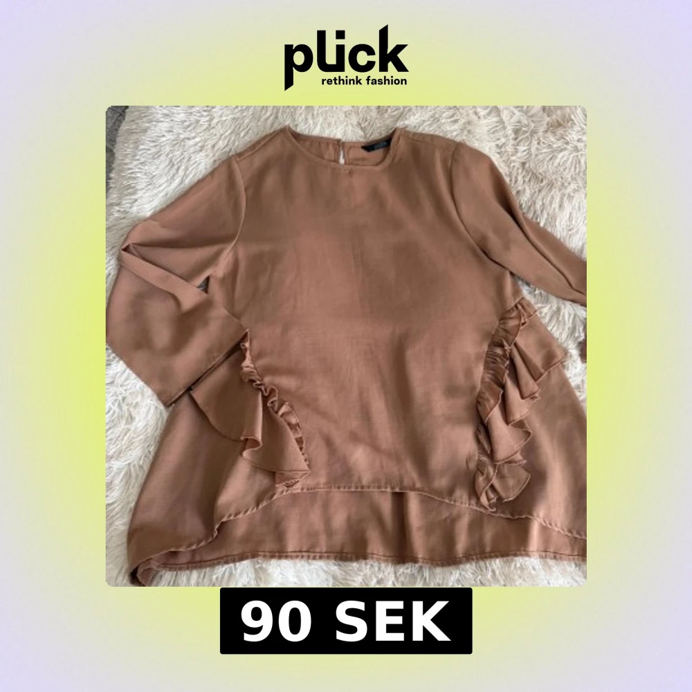 Supersöt brun sett från SHEIN i storlek XS. Blusen har långa ärmar och snygga volangdetaljer längs sidorna. Den är tillverkad i ett mjukt, lätt material och har en avslappnad passform med rund halsringning. Perfekt för dig som gillar en stilren men ändå lekfull look.