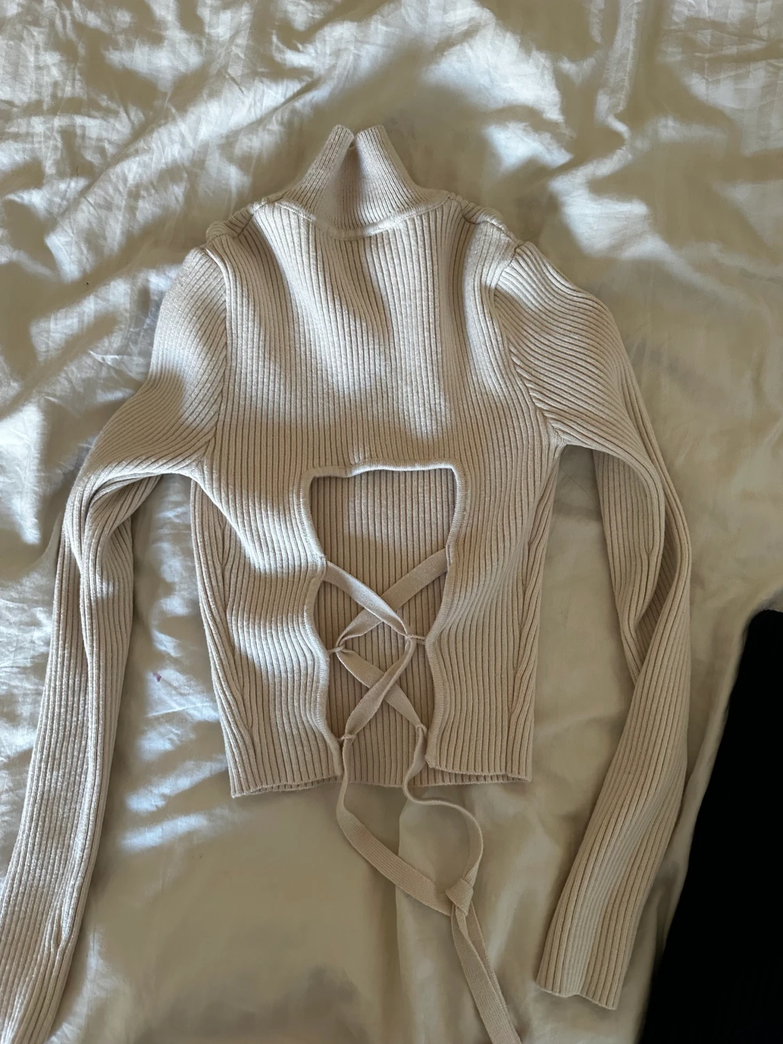 Polo tröja med öppen rygg från zara. Storlek S passar även xs och m. Stretchig material. Aldrig använd!