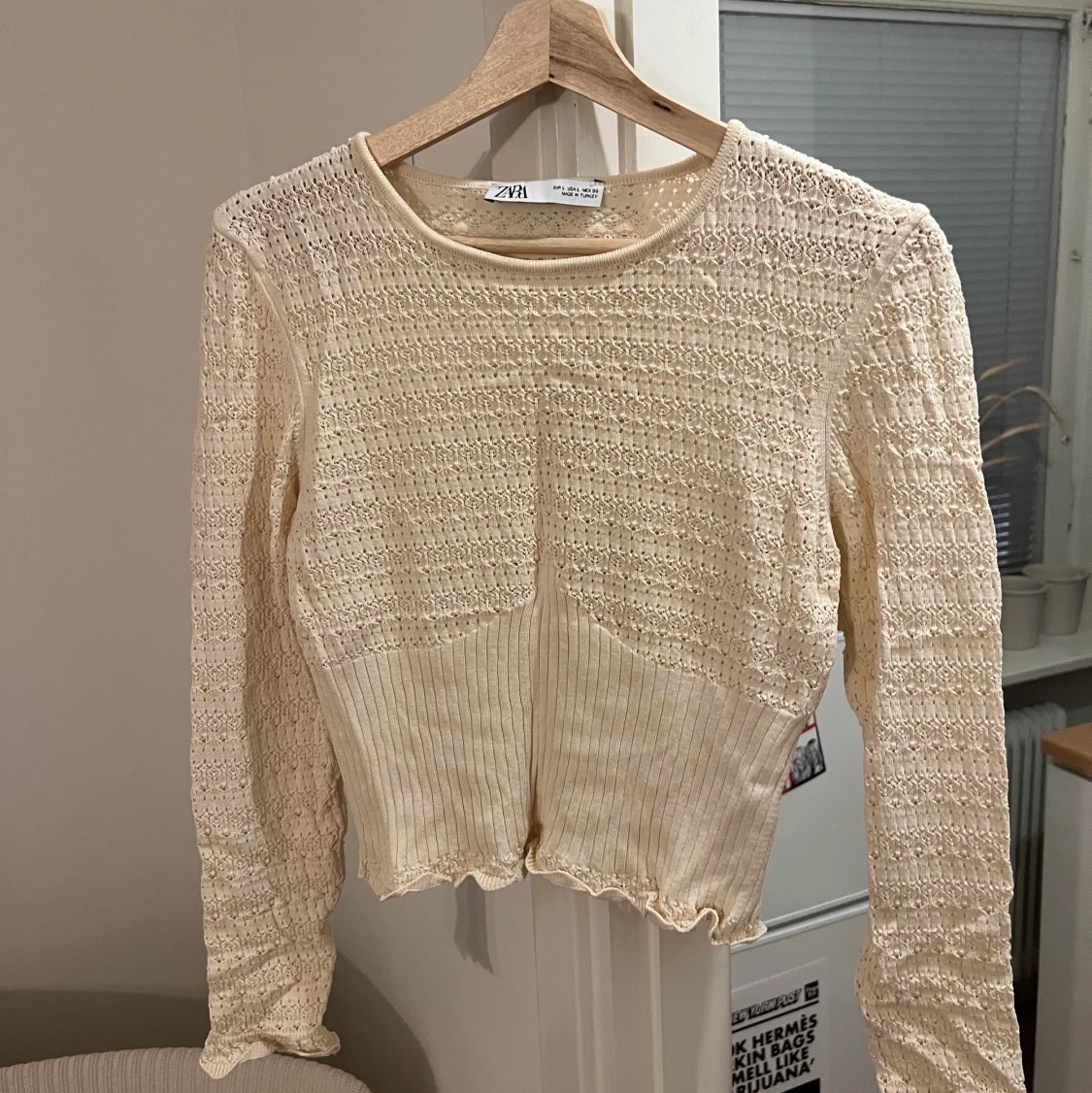 Populär virkad tröja från zara i storlek L men passar storlek s/m. Använd fåtal gånger🥰