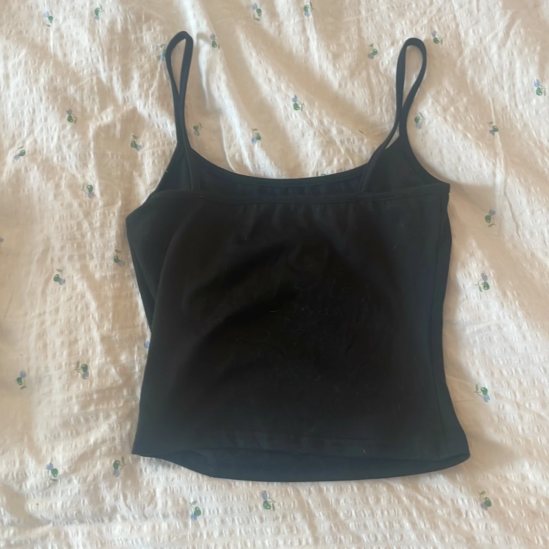 Säljer en svart, stilren linnetopp med tunna axelband och rak skärning. Toppen är figurnära och passar perfekt till jeans eller kjol. Materialet känns mjukt och stretchigt, vilket gör den superbekväm att bära. En klassiker i garderoben för dig som gillar minimalistisk stil. Skriv gärna om du undrar något!!💕