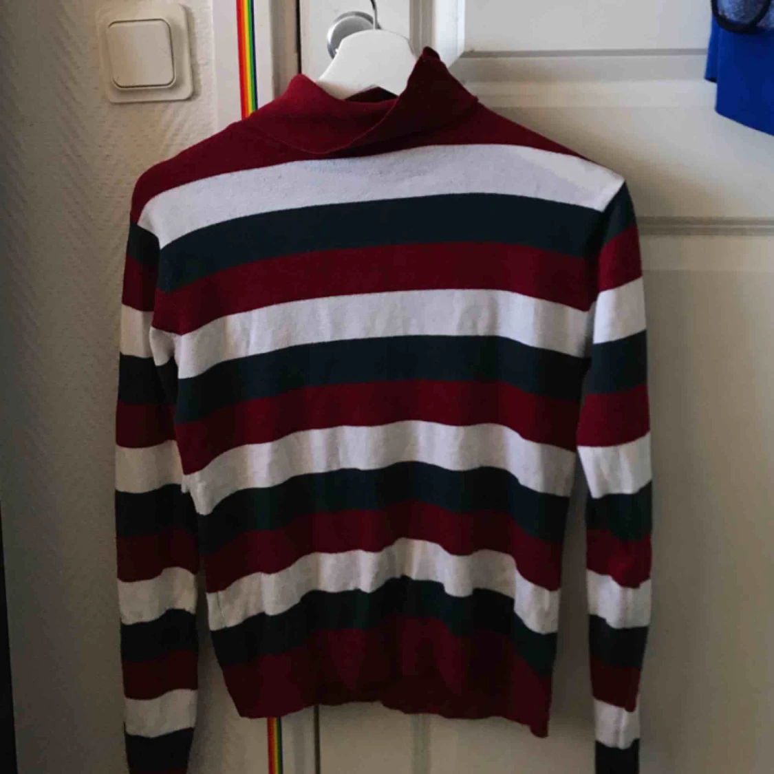 Randig polotröja i grönt, rött och vitt! Bra skick. Köparen står för frakt, kan mötas upp i stockholmsområdet.