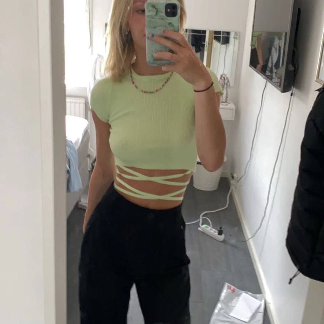 Säljer denna gröna topp med snörning vid midjan, för liten för mig💕