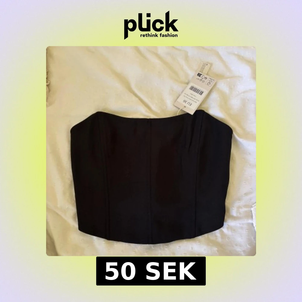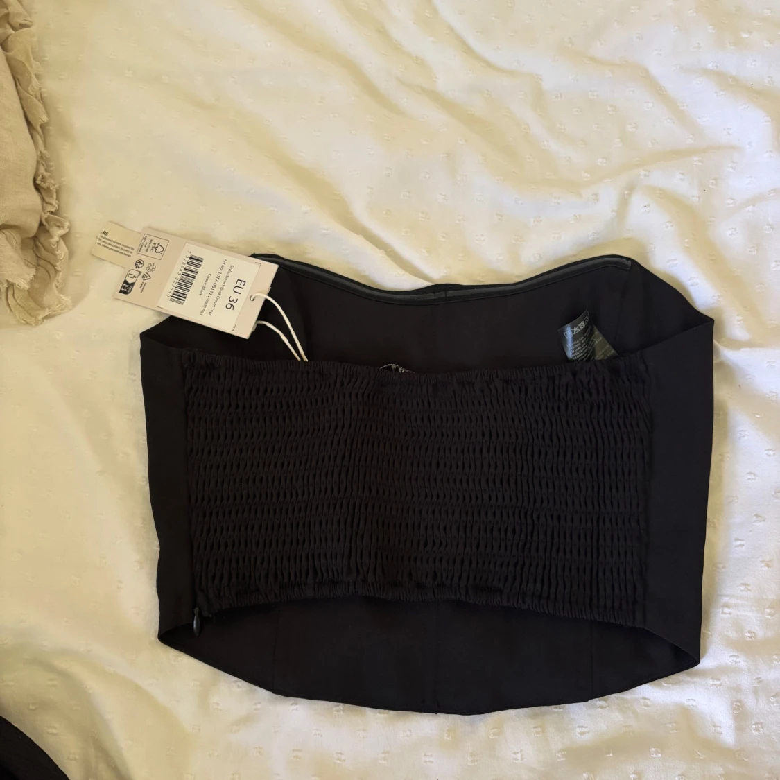 Snygg svart korsett-topp från nakd med stilren design och markerade sömmar framtill. Toppen är axelbandslös och har en smockad baksida för extra komfort. Perfekt att styla med höga jeans eller kjol för en trendig look.