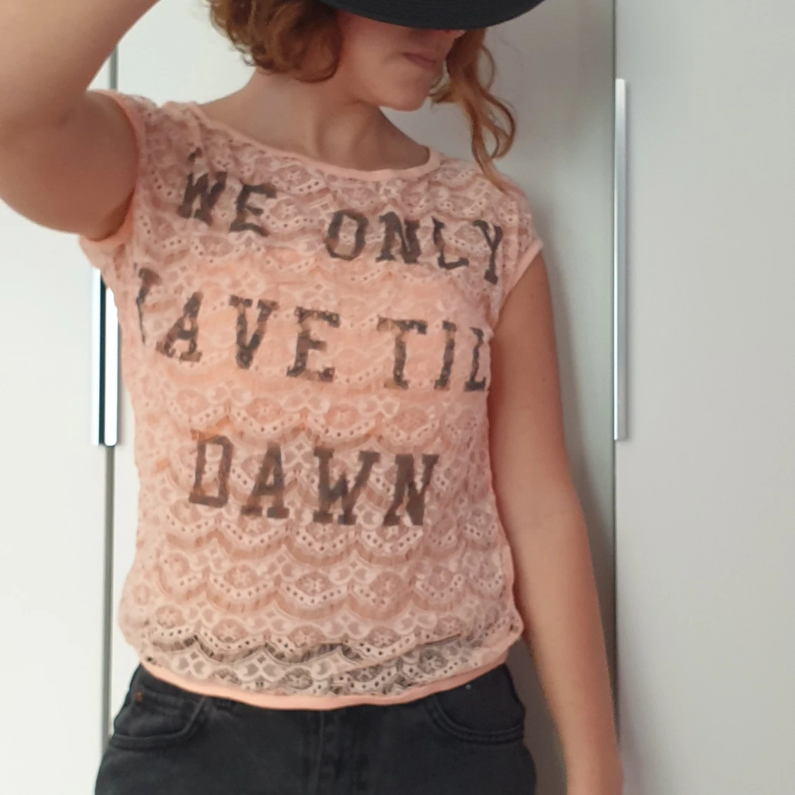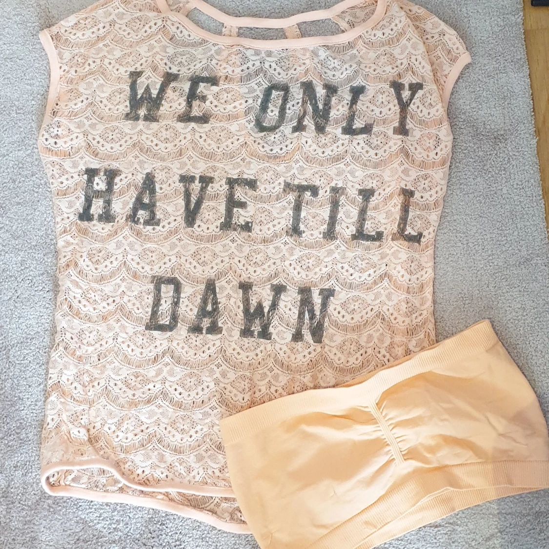Persikofärgad topp coolt mönster, i två delar ( seamless bandeau bh tillkommer ) 100% Bomull.