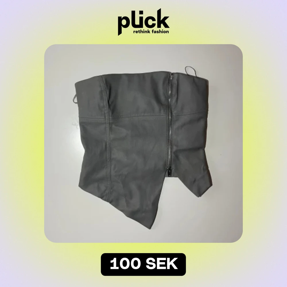 Grå topp från Bershka som aldrig är använd. Croppad och utan axelband. Silvrig dragkedja.