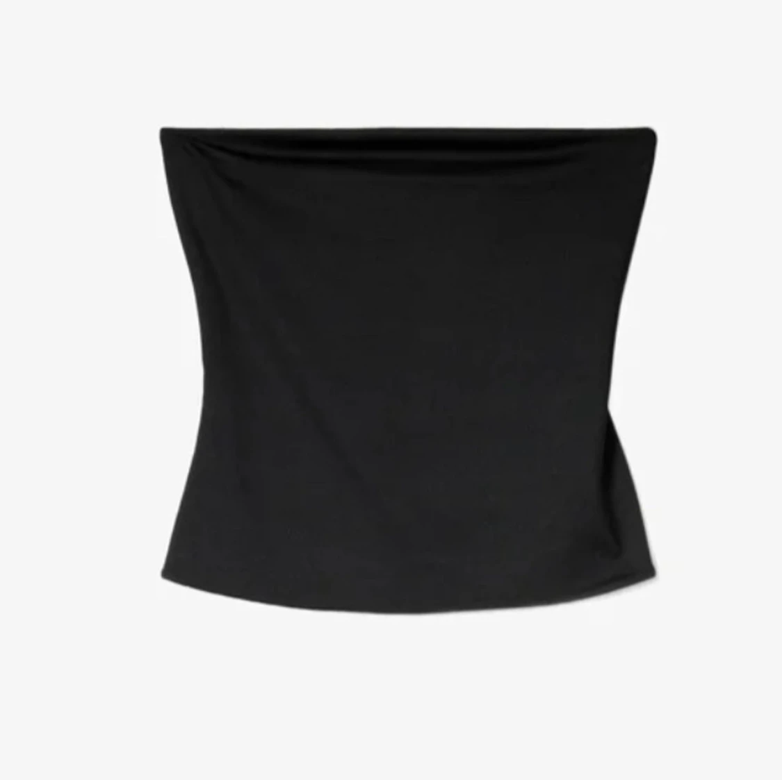 Enkel och stilren svart bandeau tubtopp i stretchigt material. Toppen är axelbandslös och sitter tight mot kroppen, perfekt att matcha med jeans eller kjol. Snygg minimalistisk look som funkar året runt.