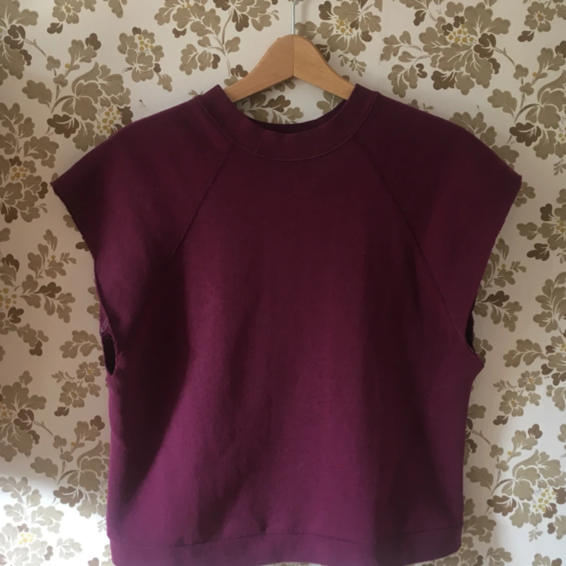 Längre magtröja i sweatshirt-tyg. Fin vinröd färg. Köpt på Beyond retro. Passar XS-L.