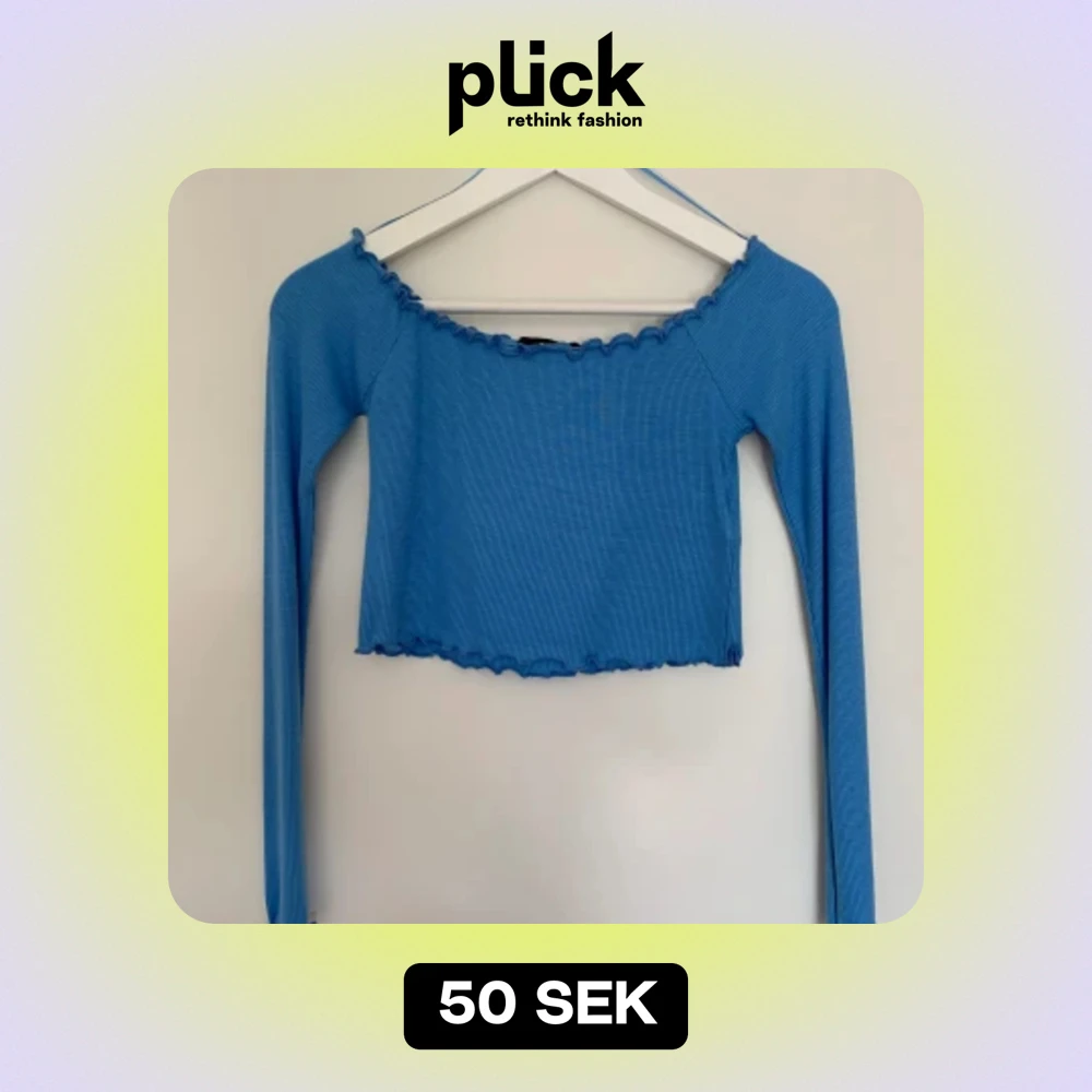 Blå cropped off-shoulder topp från BikBok. Storlek XS. Oanvänd.