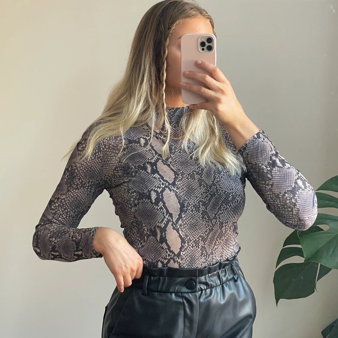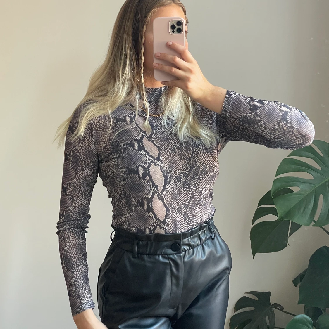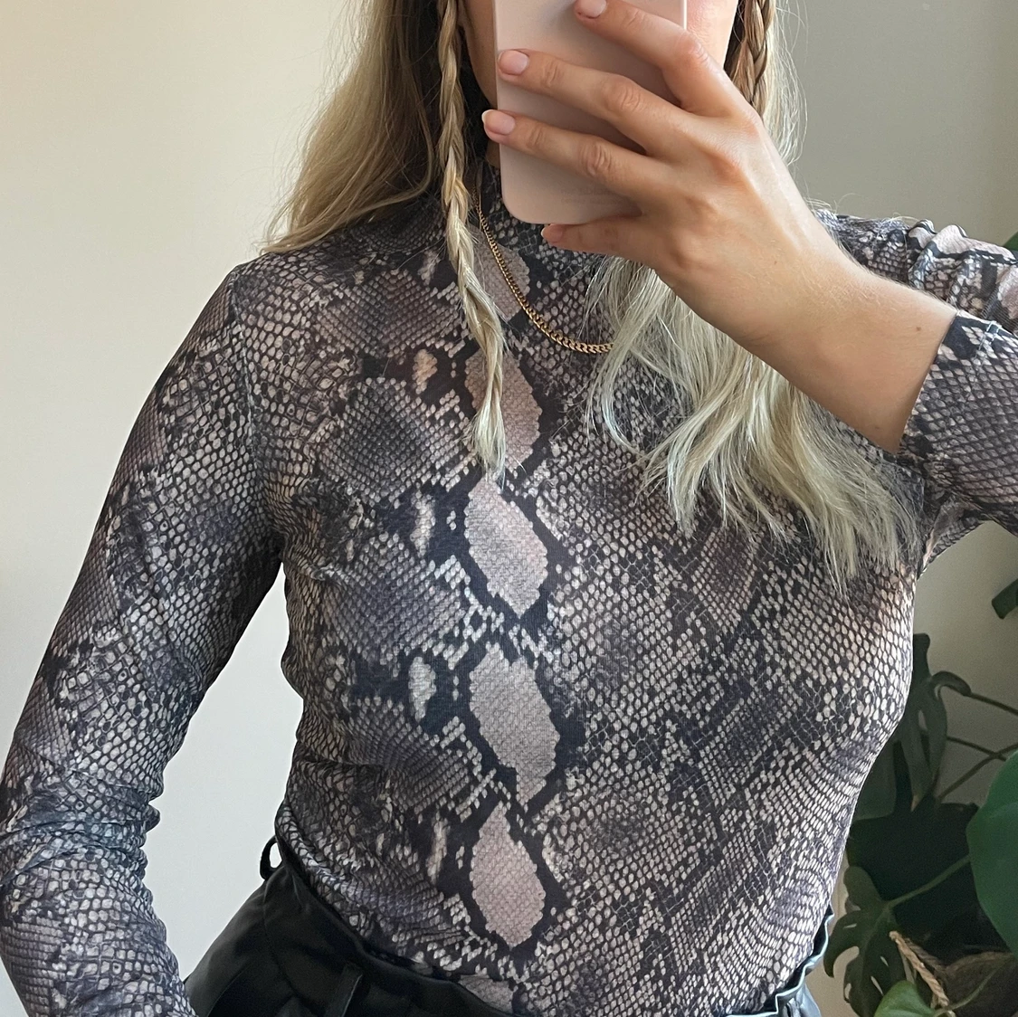 Långärmad meshtröja med ormskinns mönster. Tröjan är använd men ser ut som ny! Väldigt tunna och härligt material, något genomskinlig om man bär något vitt under.