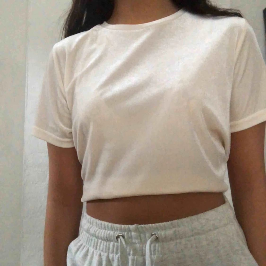 Ljusrosa t-shirt i samet, (jag har vikt upp den på bilden för att det ska bli en crop top). Frakt på 50kr tillkommer