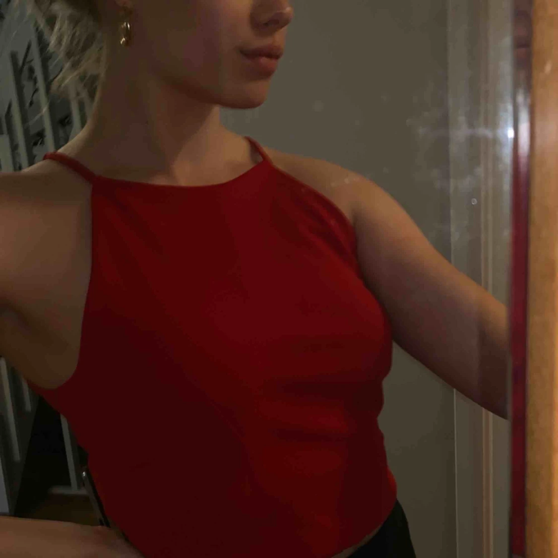 En röd topp med fin skurning. Sitter jättefint vid halsen. Köpt från bikbok. Storlek L men jag som vanligtvis har M tycker den sitter jättefint på. Tvättas och stryks innan säljs