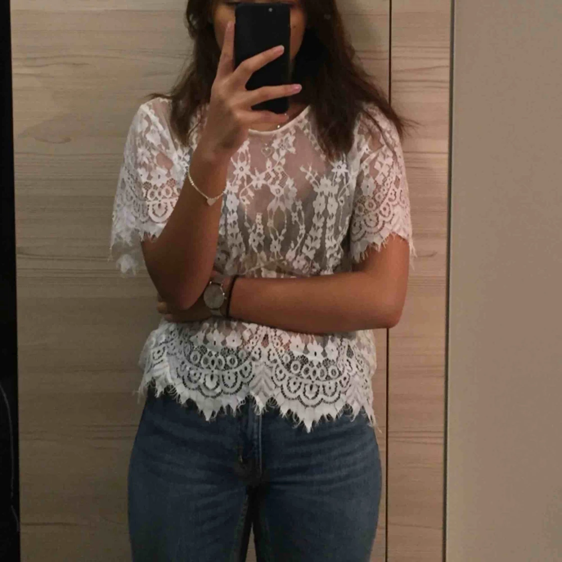Spets topp från Bikbok i storlek XS, den är genomskinlig och visar ganska mycket. Men den är väldigt fin! Dock har den ingen stretch i sig.