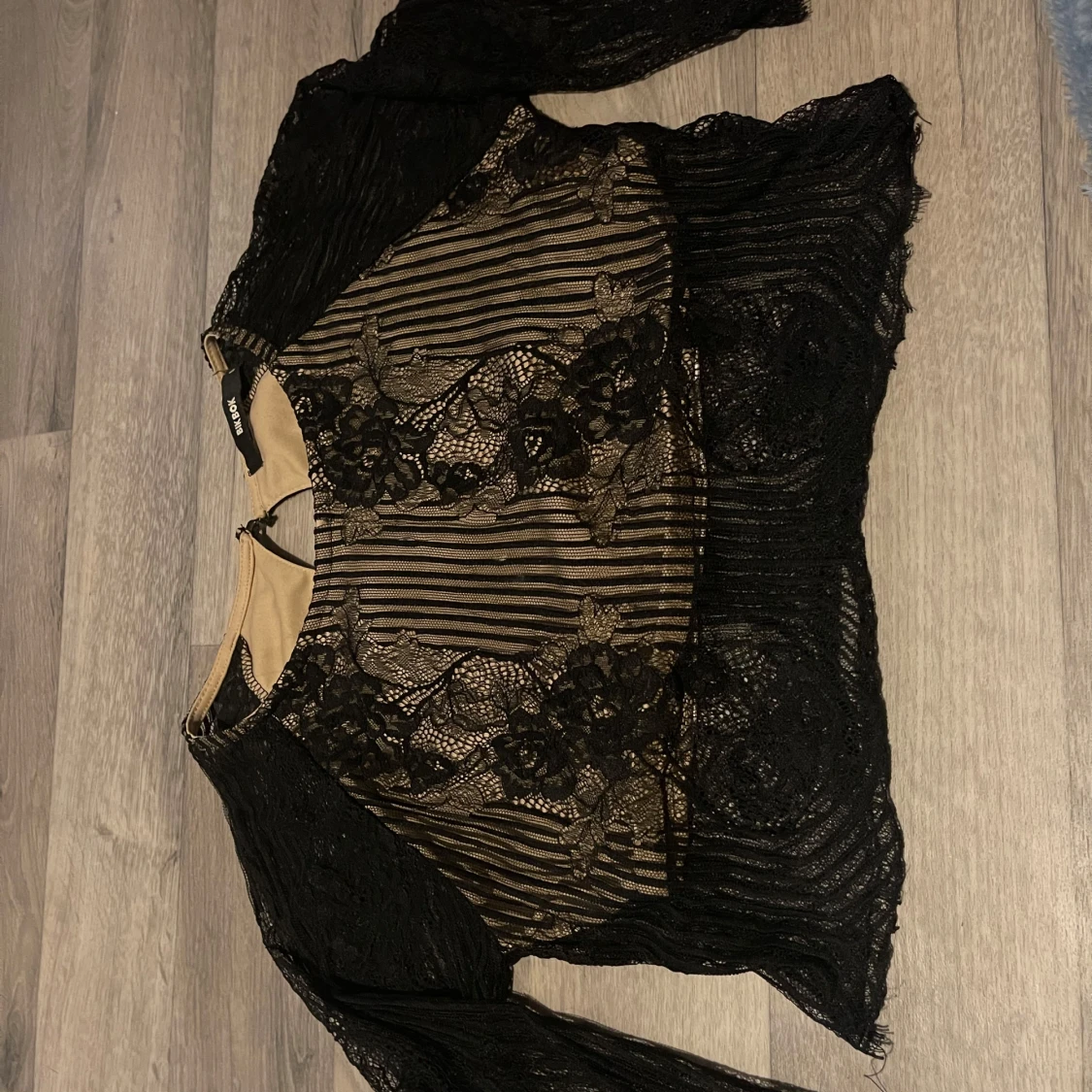 Snygg svart spetsblus från Bik Bok med blommigt mönster och transparenta detaljer. Perfekt för en festlig kväll! Blusen har långa ärmar och en elegant design som ger en chic look.