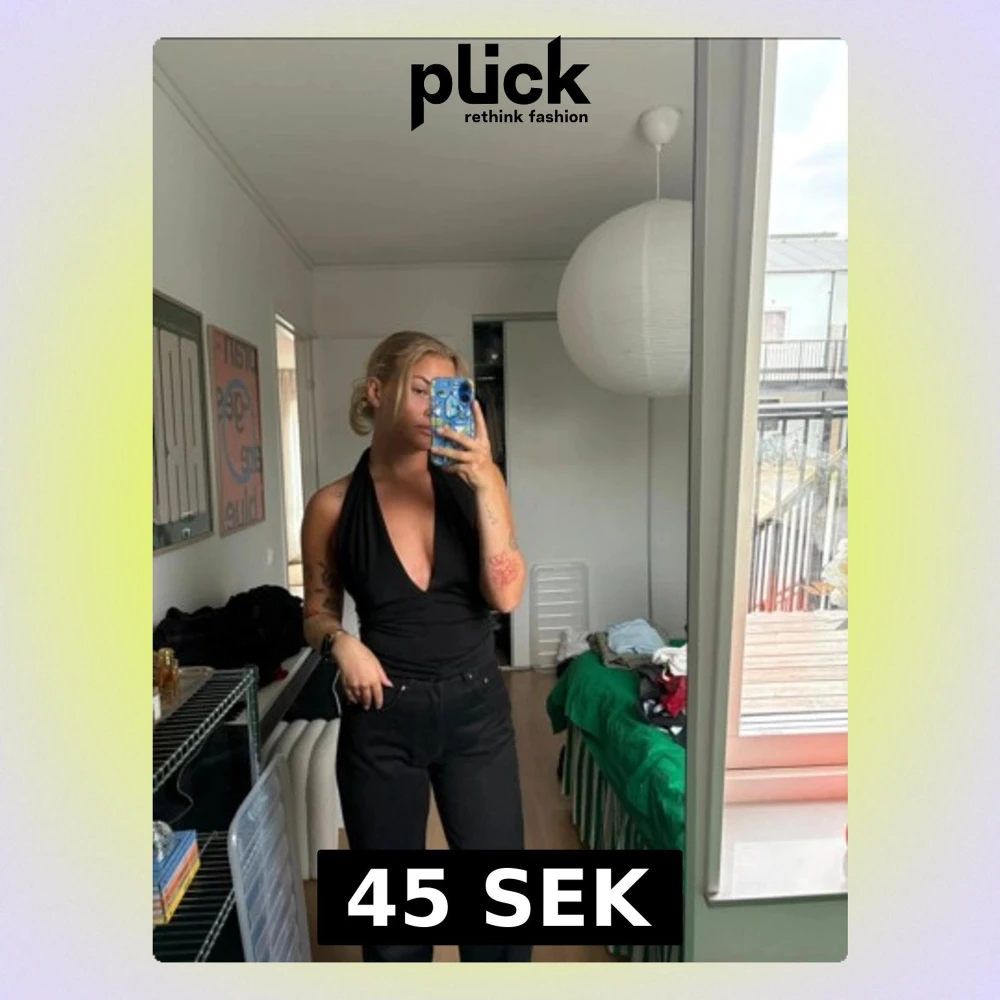 Lånad bild från förra säljaren! Super söt svart halterneck topp från BikBok som aldrig kommit till användning. Fint skick!