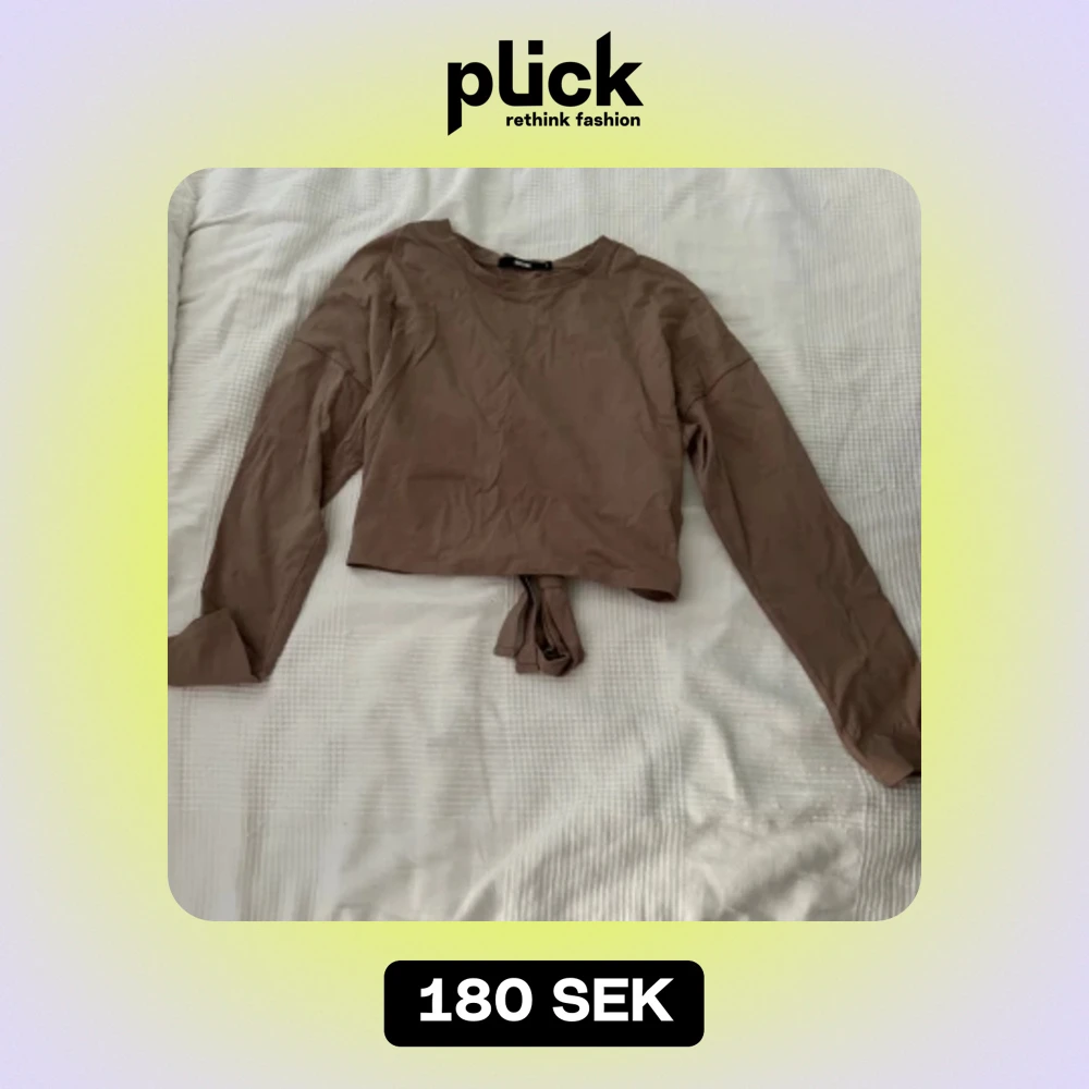 Säljer en snygg brun croppad topp från BikBok. Den har långa ärmar och en knytning på baksidan.