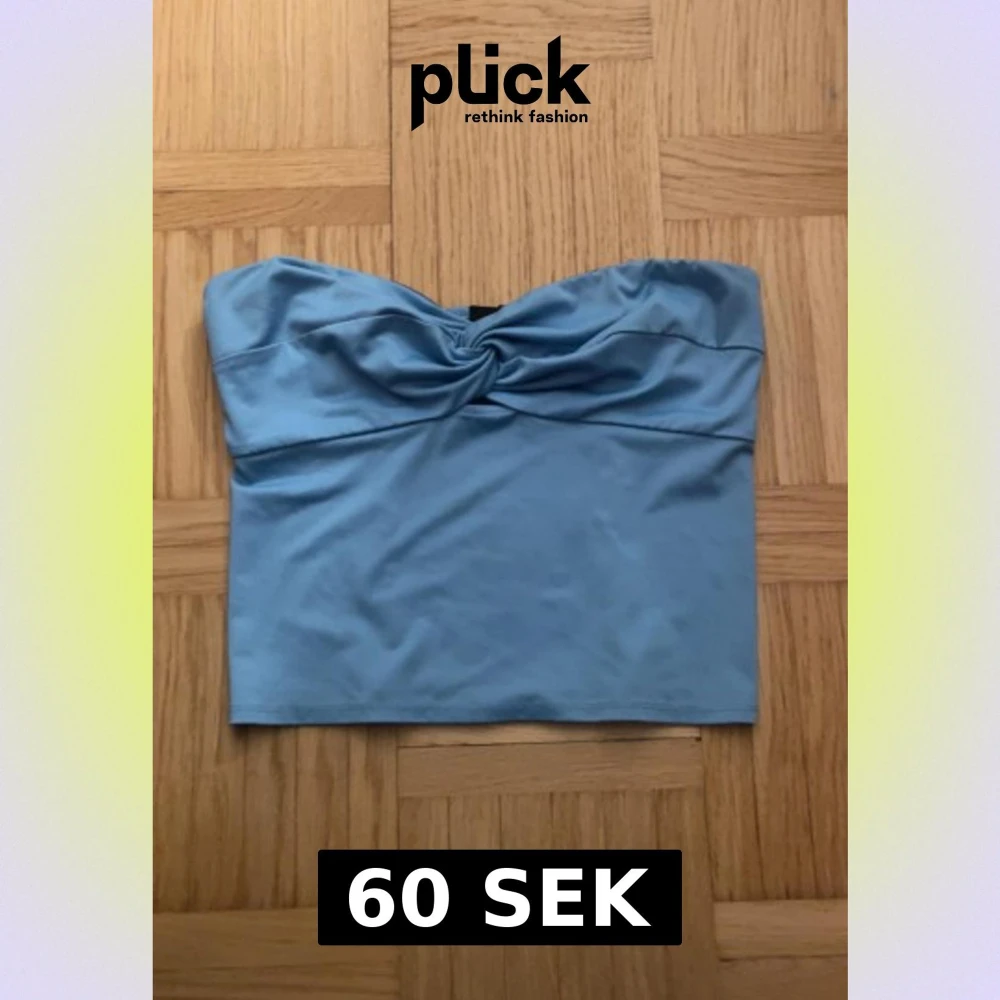 Säljer en ljusblå bandeau tubtopp från Bik Bok i storlek L. Toppen har en snygg twistad detalj framtill och är axelbandslös med smockad baksida för extra komfort. Perfekt för varma dagar och sommarhäng.