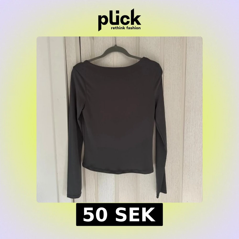 Säljer en stilren mörkgrå långärmad topp med djup urringning i ryggen. Toppen har en enkel och slät design, perfekt för att matcha med olika outfits. Materialet känns mjukt och stretchigt för en bekväm passform.