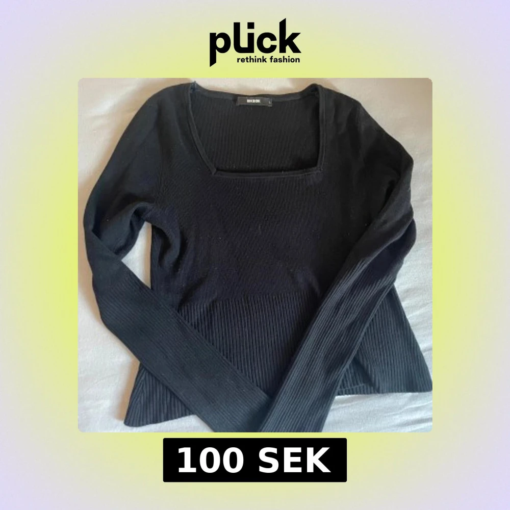 Svart långärmad topp från BikBok med fyrkantig ringning och ribbade detaljer nedtill och på ärmarna. Snygg och enkel modell som passar till många olika outfits. Mjuk och stretchig, perfekt för dig som gillar stilrena plagg.