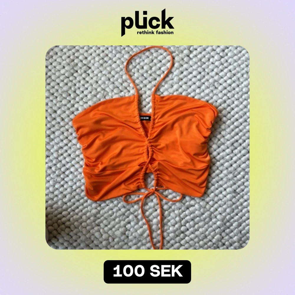 Säljer en superfin orange topp från BikBok i storlek M. Den har en snygg snörning framtill och är gjord i ett mjukt och stretchigt material. Perfekt för sommardagar eller en festkväll! 💥