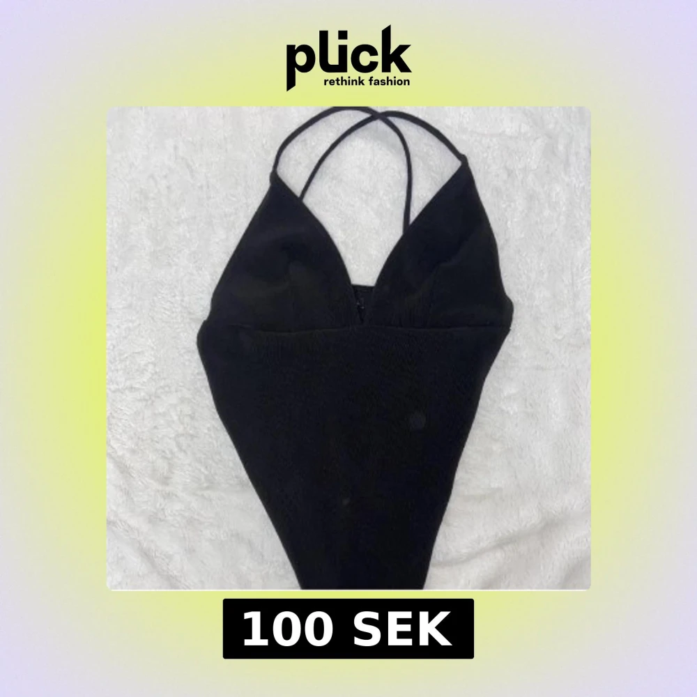 Snygg svart ärmlös body med korsade band i ryggen. Perfekt för en stilren och modern look. Passar bra till både byxor och kjol. Den har en söm längs me ryggen som man ser att den e handsydd om man kollar noga