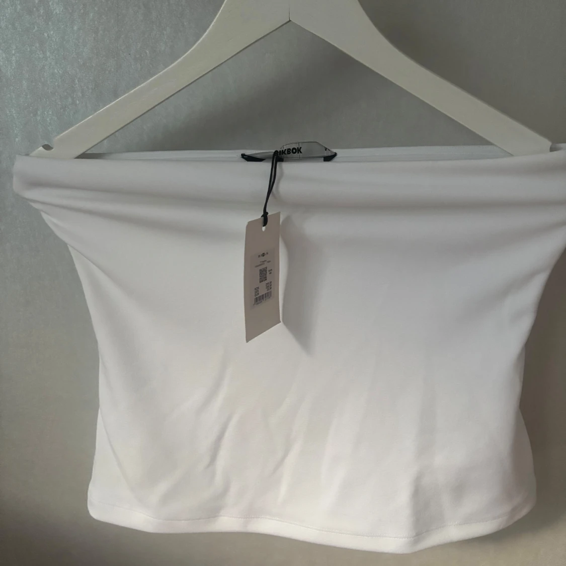En vit tub topp som är helt oanvänd från bikbok. Råkade köpa i en storlek för stor och det krånglade med returen. Inte genomskinlig alls och perfekt till en lång fin kjol kanske🩷