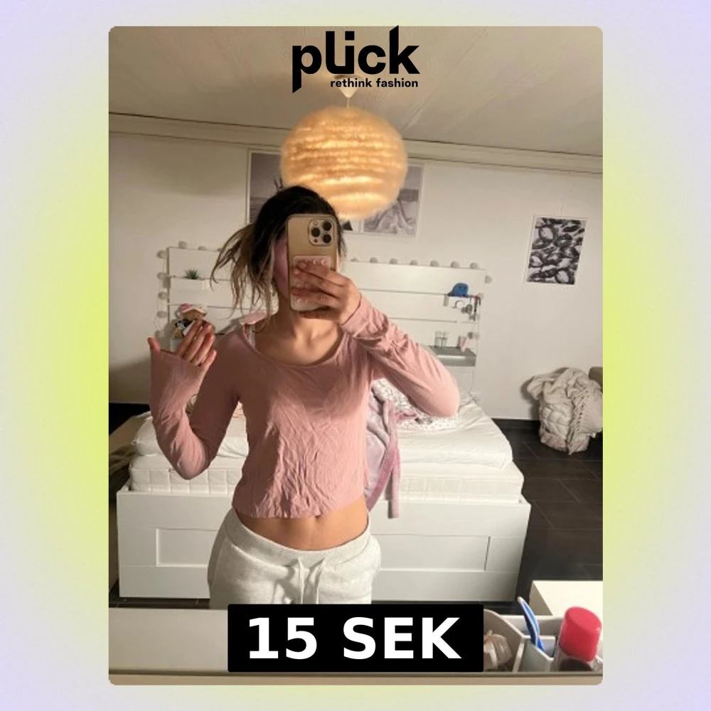 Säljer en ljusrosa croppad långärmad topp från BikBok. Toppen är ribbad och har en rund halsringning.