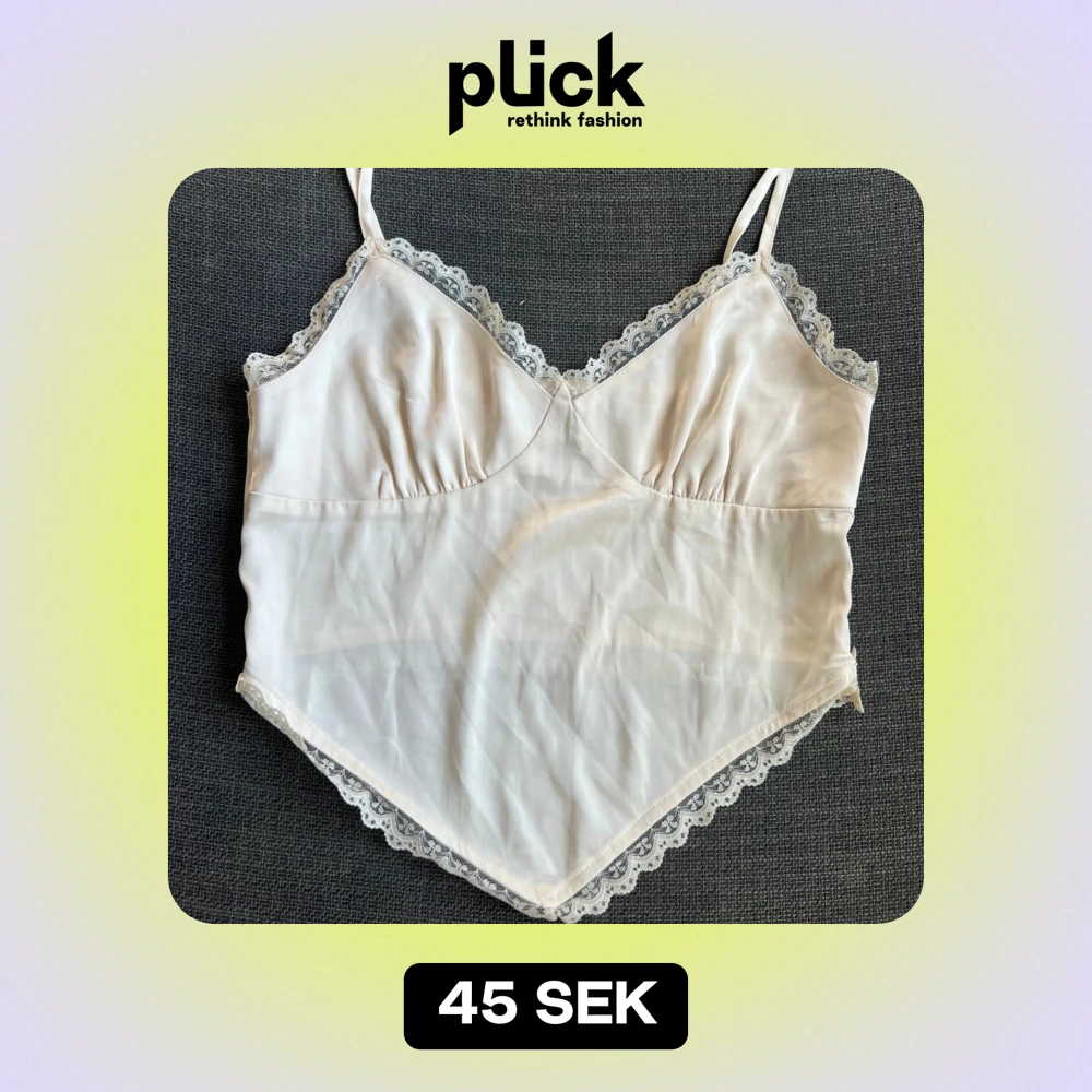 Säljer en superfint linne med spetsdetaljer runt kanterna. Den är ärmlös med smala axelband och har en mjuk och skön passform. Perfekt för sommardagar eller som ett lager under en tröja.