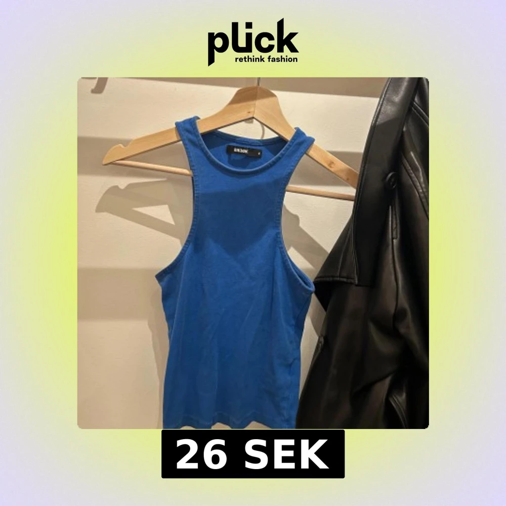 Säljer en enkel och snygg blå linnetopp från Bik Bok i storlek M. Toppen har en rak och ärmlös design med rund halsringning och är gjord i mjuk bomull. Perfekt att styla med jeans eller shorts för en chill look.