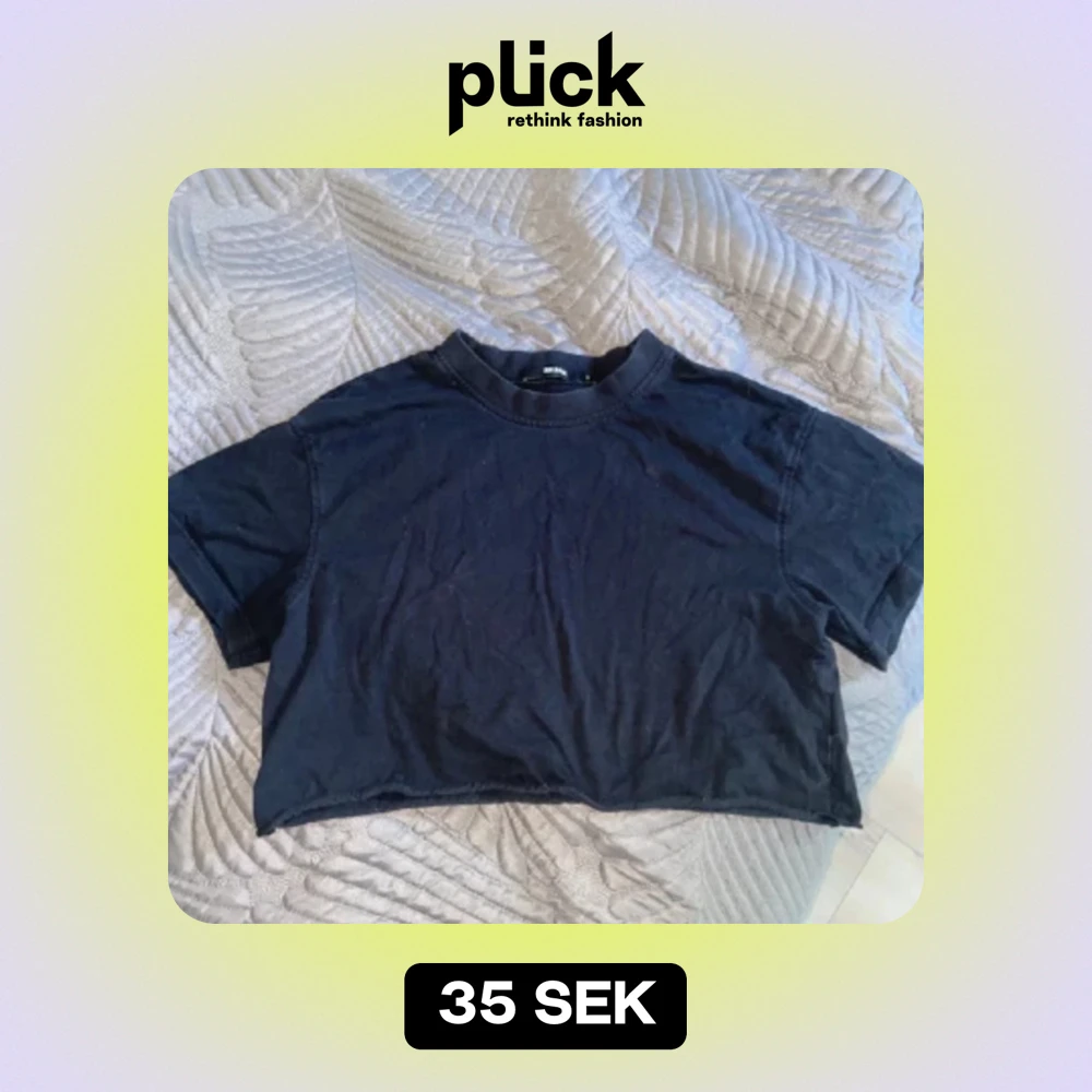 Säljer en svart croppad t-shirt från BikBok. Den är i bomull och har en enkel, stilren design med korta ärmar. Perfekt för en avslappnad look!