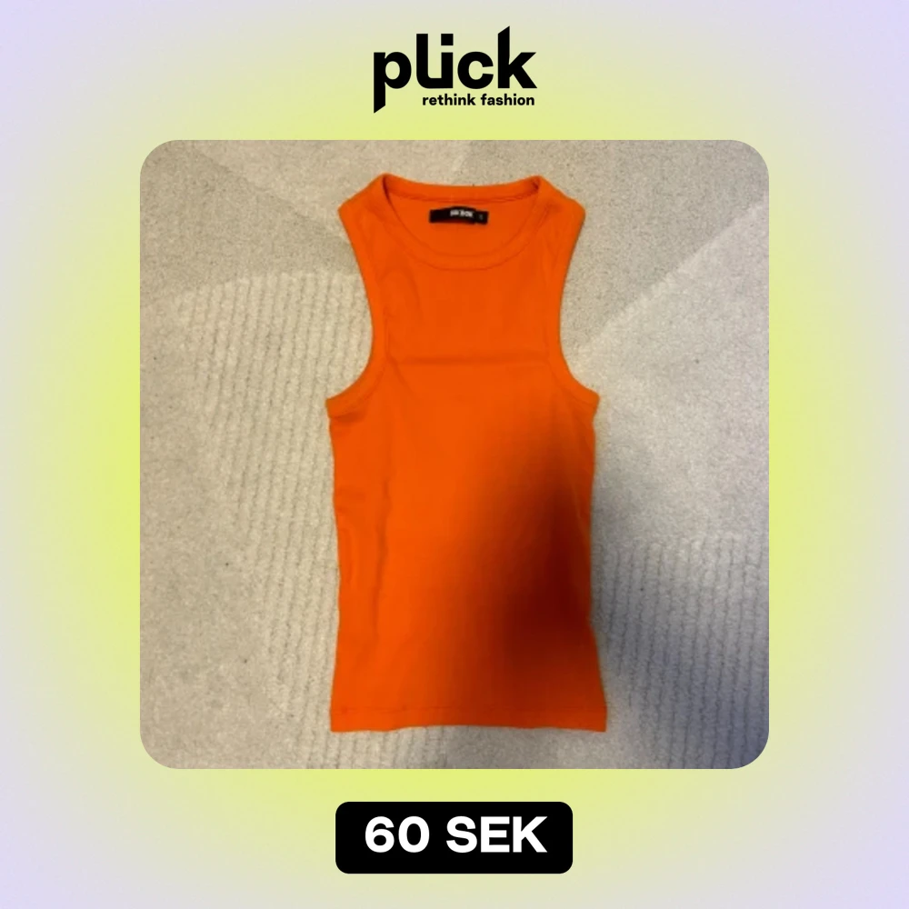 Orange ribbad linne/topp i storlek S. Aldrig använd.