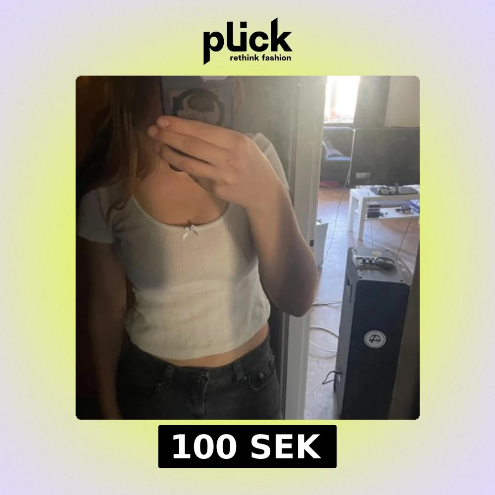 Säljer en söt vit croppad topp med ribbad struktur och liten rosettdetalj framtill. Toppen har korta ärmar och rund halsringning. Perfekt till sommaren! Toppen är från bikbok och storlek S🥰💕
