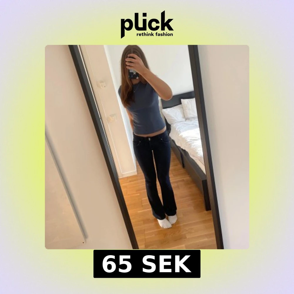Säljer en blå topp med korta ärmar och rund hals. Sitter tight och har en enkel, stilren look som passar perfekt till jeans eller kjol. Superenkel att matcha och ger en fräsch vibe till din outfit.