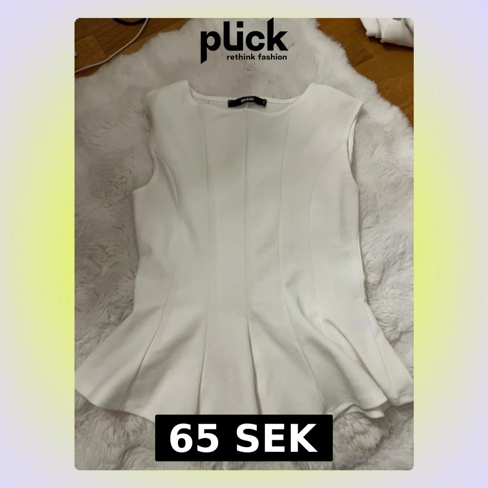 Säljer en stilren vit blus från Bikbok i storlek S. Toppen är ärmlös med figurnära passform och har snygga sömmar som ger en skräddad look. Nederdelen är lätt utsvängd vilket ger en cool siluett. Perfekt att styla med jeans eller kjol.