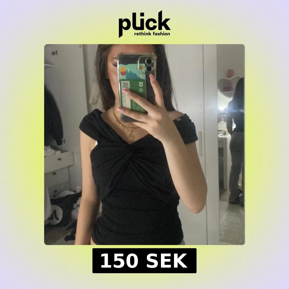Säljer en svart omlott topp med snygg twistad detalj framtill. Toppen har offshoulder-design och sitter tight, perfekt för att lyfta din stil. Mjuk och stretchig känsla, passar till många olika outfits.