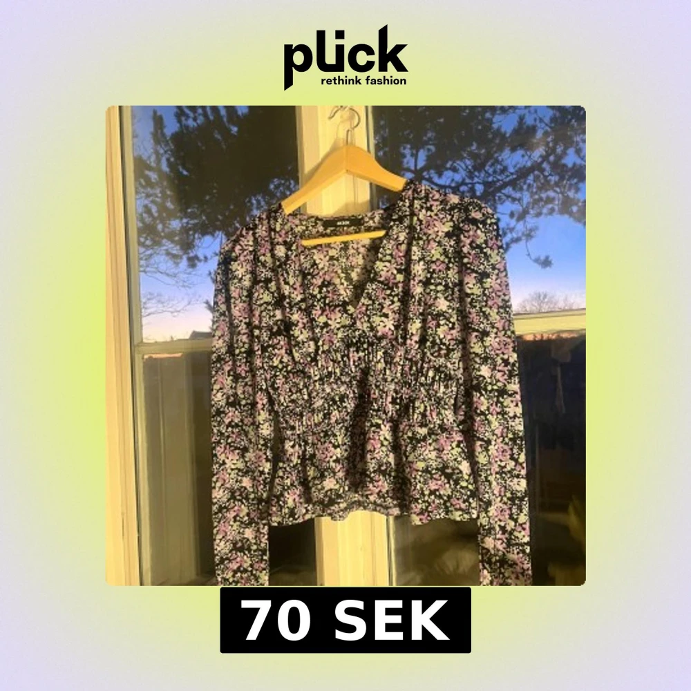 Säljer en blommig blus från Bikbok i storlek S. Blusen har v-ringning, långärmade ärmar och smockad midja som ger en snygg siluett. Färgerna är svart, lila och vit med ett blommigt mönster. Perfekt för dig som gillar romantiska vibes och detaljer.