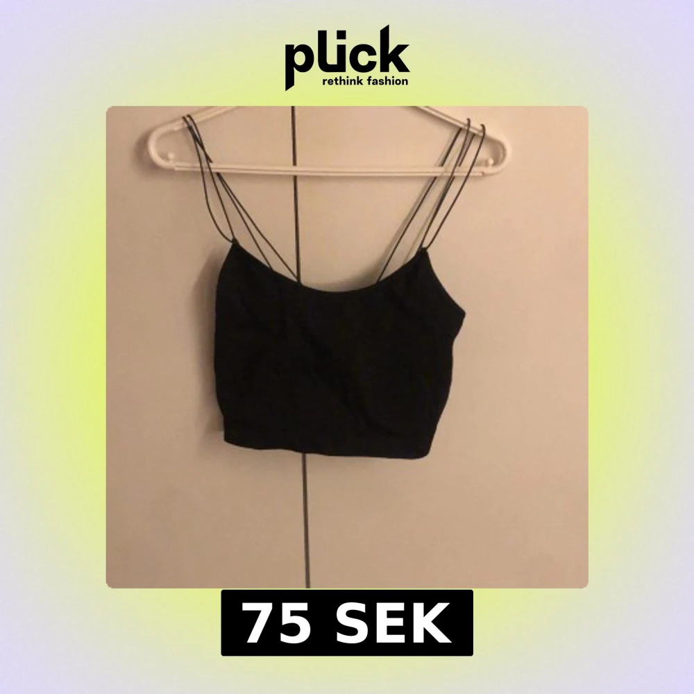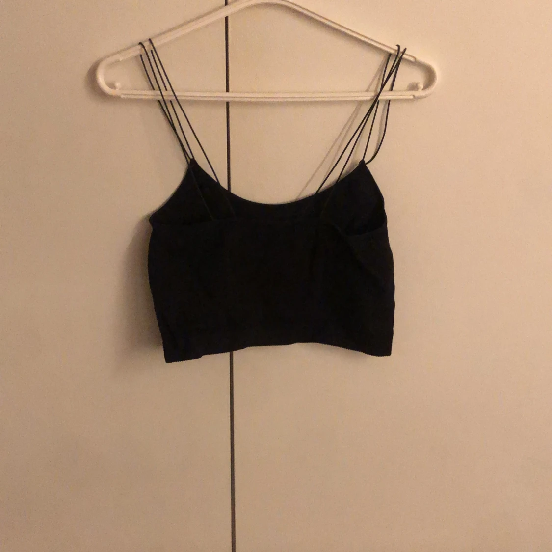 Snygg svart topp från Bik Bok med tunna axelband. Perfekt för en stilren look. Tillverkad i en mjuk och stretchig polyesterblandning. Toppen är perfekt både till träning men även till vardags. Den är i storlek S-M men skulle säga att den passar S-L🥰🥰