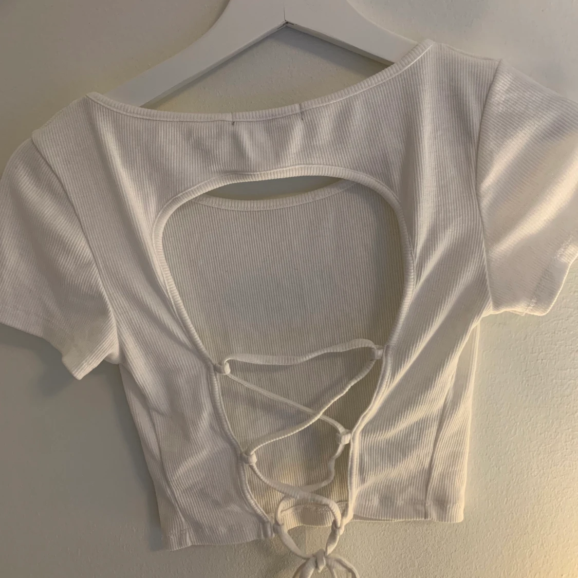 En vit lite kroppad kortärmad tröja från BikBok storlek S. Knappt använd