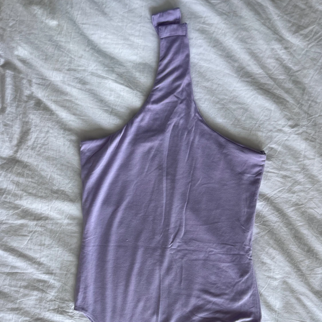 Säljer en ljuslila body med oneshoulder-design. Toppen är ärmlös och har en clean, slät look utan mönster eller detaljer. Materialet känns mjukt och stretchigt, perfekt för att styla med jeans eller kjol. Färgen är superfräsch och ger en chill vibe.
