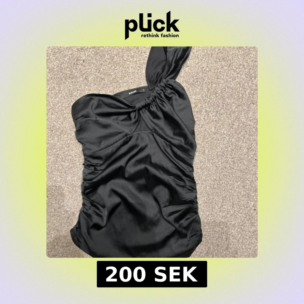 Snygg svart oneshoulder topp från Bik Bok i glansigt material. Perfekt festtopp som passar till i stort sett alla underdelar!!💞💞💞