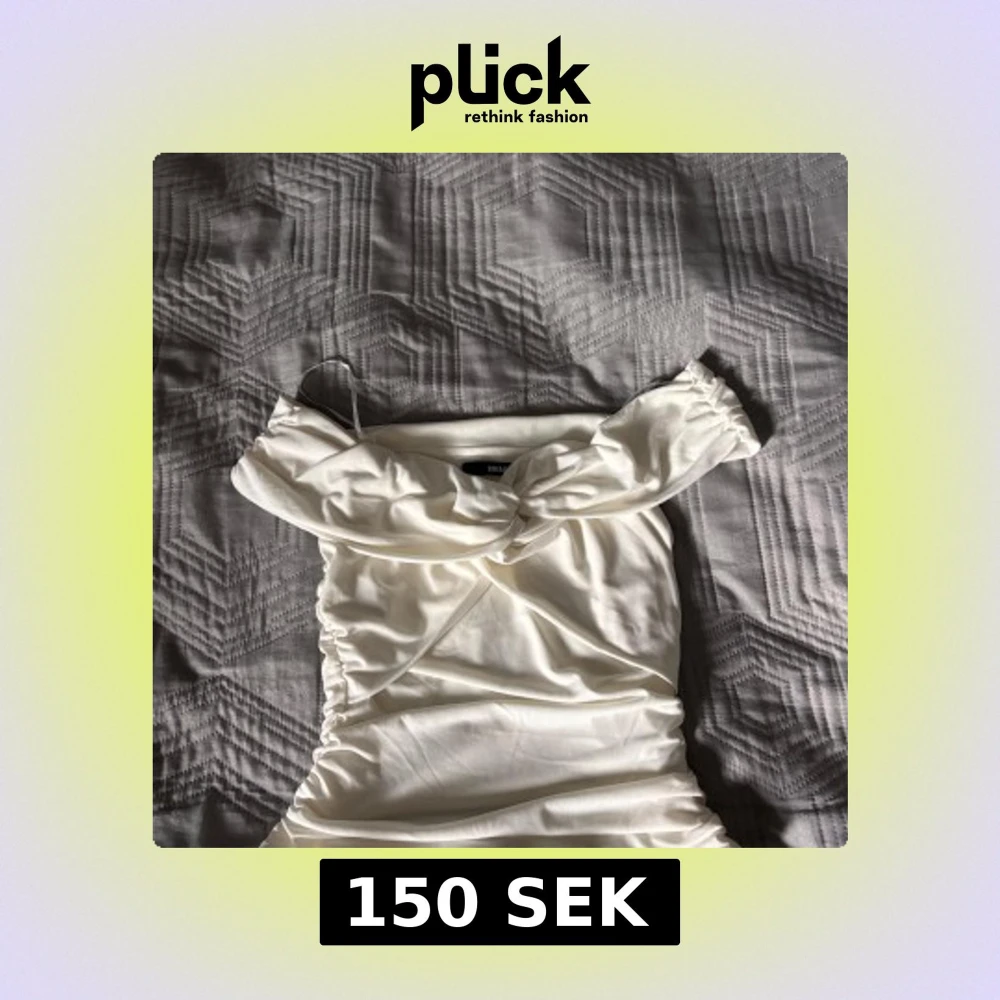 Supersöt vit offshoulder topp från Bik Bok med twistad detalj framtill. Toppen är figurnära och har rynkade sidor som ger en snygg passform.