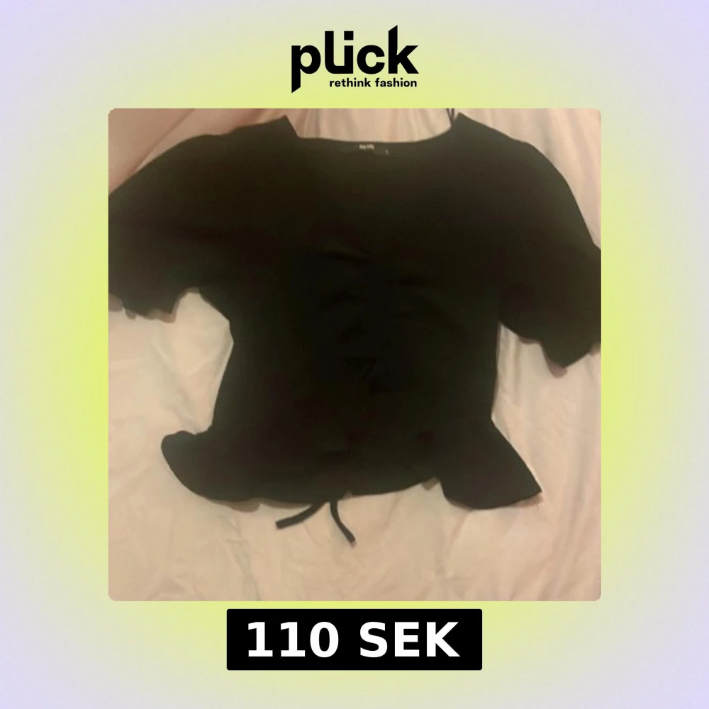 Snygg svart topp från BikBok med korta puffärmar och knytning i midjan. Perfekt för en stilren look.