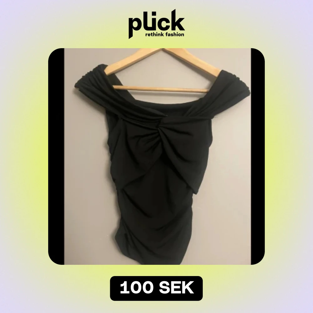 En svart lite kroppad off-shoulder tröja. Köpt från bikbok och använd en gång! Skriv för fler bilder💕
