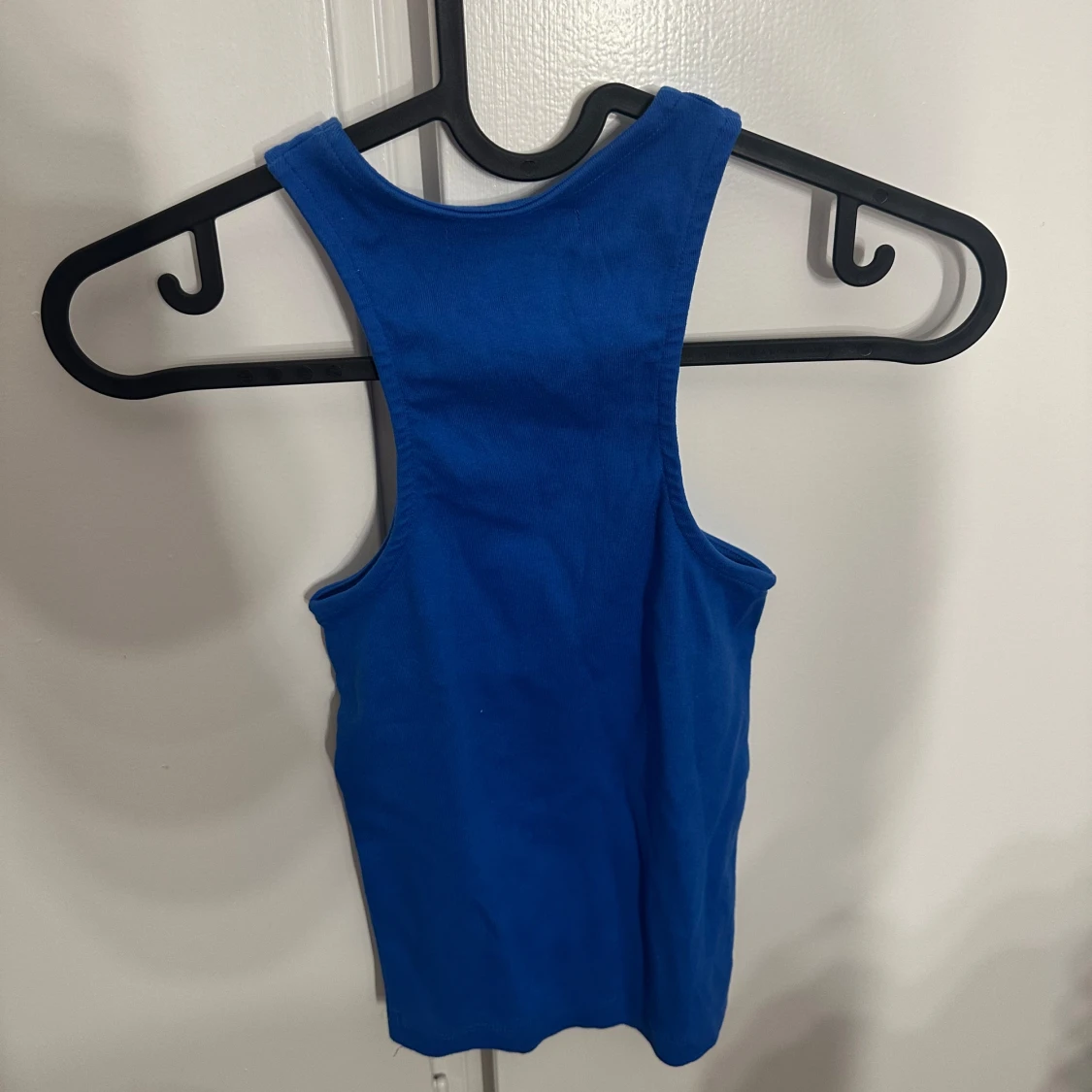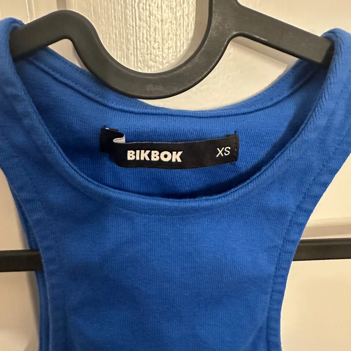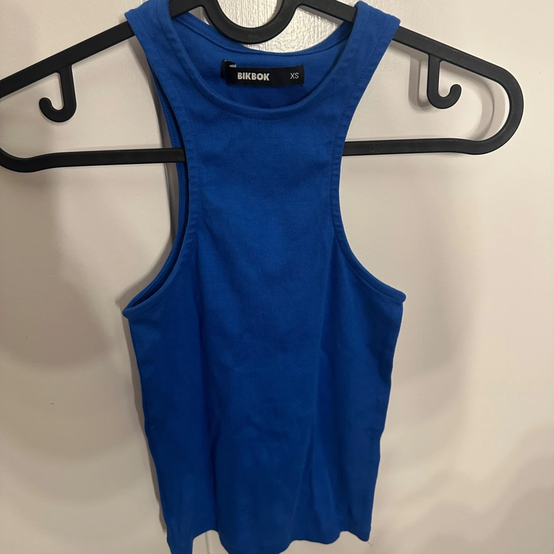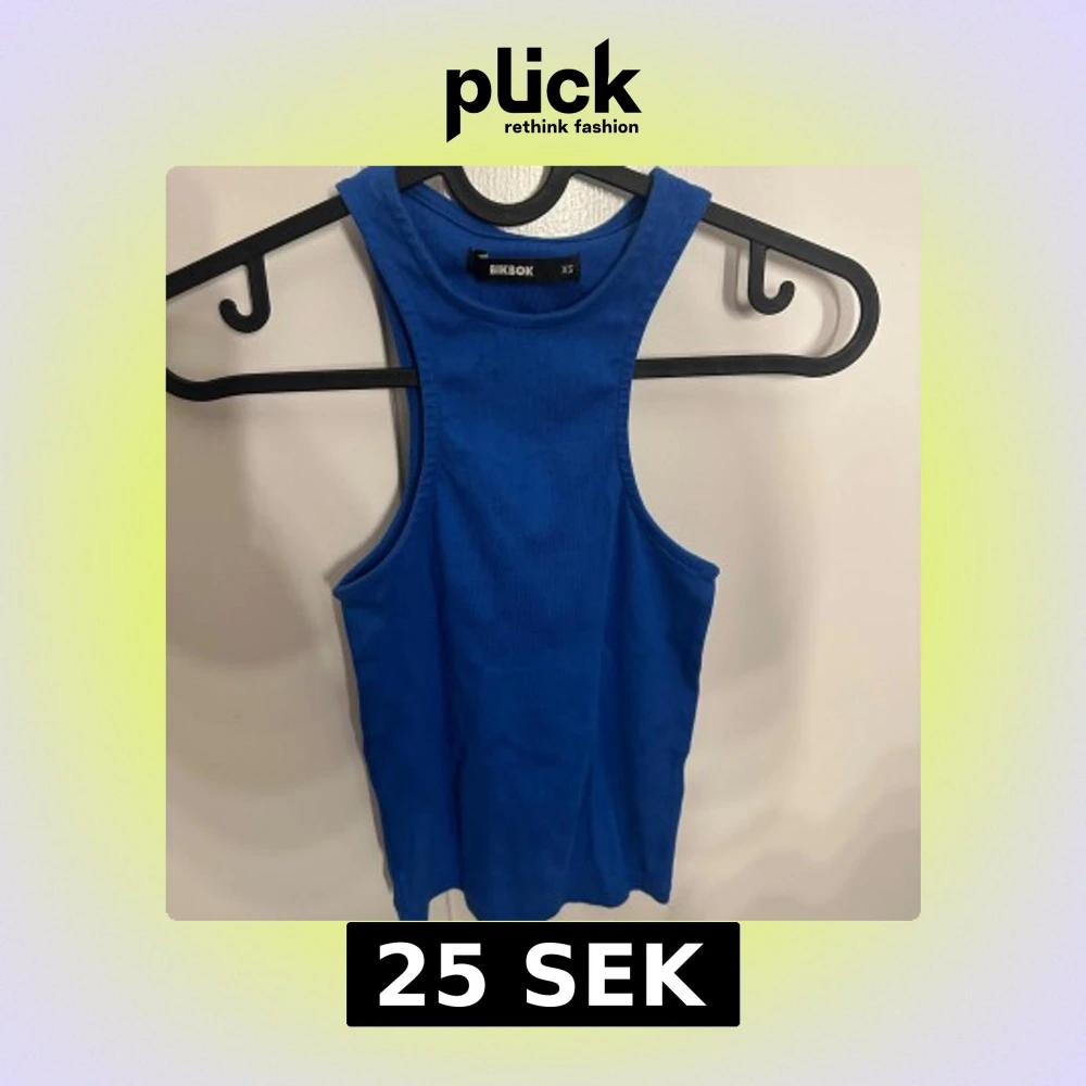 Snygg blå linnetopp från BikBok i storlek XS. Toppen har en klassisk rak modell med breda axelband och rund halsringning. Perfekt att matcha med jeans eller kjol för en fräsch look. Tillverkad i mjuk bomull som känns skön mot huden