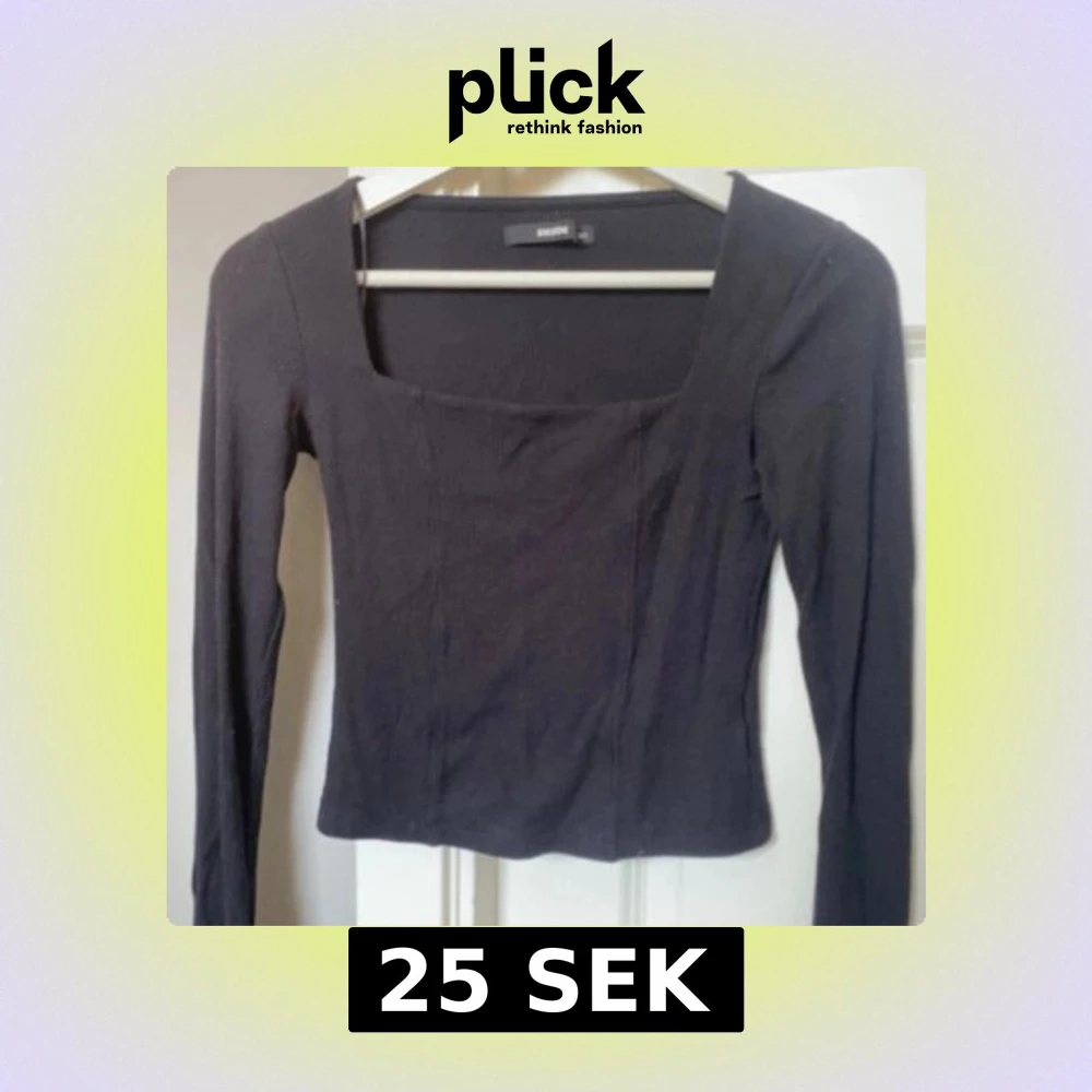 Svart långärmad topp från Bik Bok med fyrkantig halsringning och ribbad struktur. Snygg och enkel design som är lätt att matcha med olika outfits. Materialet är mjukt och stretchigt för en bekväm passform.