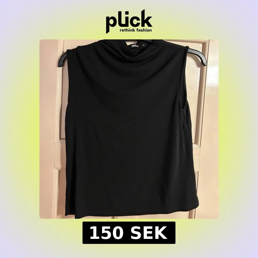 En stilren svart polotopp från Bik Bok i slät polyester. Toppen är ärmlös med hög krage och har en enkel, clean look som passar till många outfits. Perfekt för dig som gillar minimalistisk stil och vill ha något som funkar året runt.