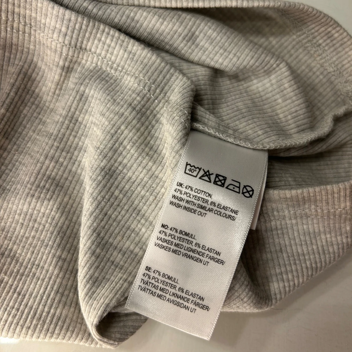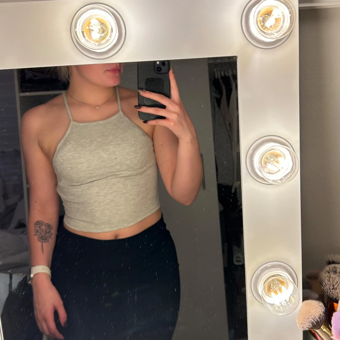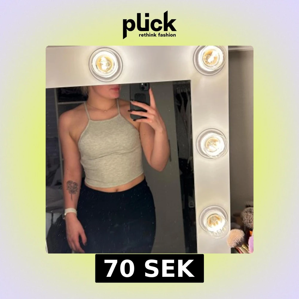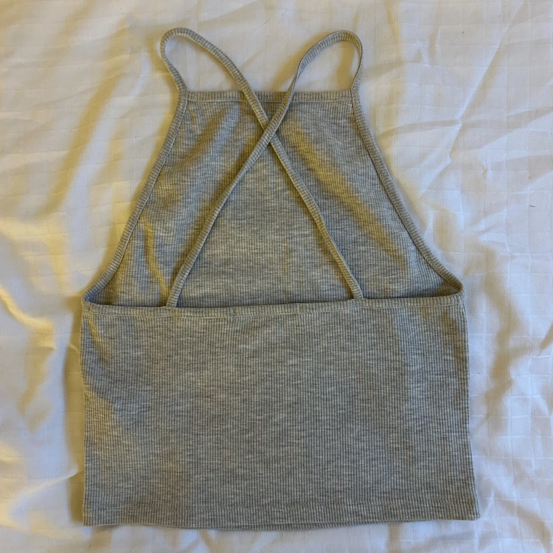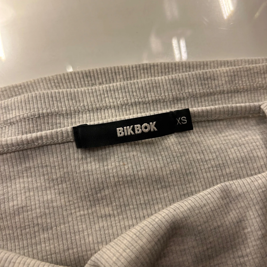 Säljer en ljusgrå ribbad linnetopp från BikBok i storlek XS. Toppen är croppad med smala axelband som korsas i ryggen och har en tight passform. Perfekt till sommaren och enkel att matcha med jeans eller kjol. Knappt använd