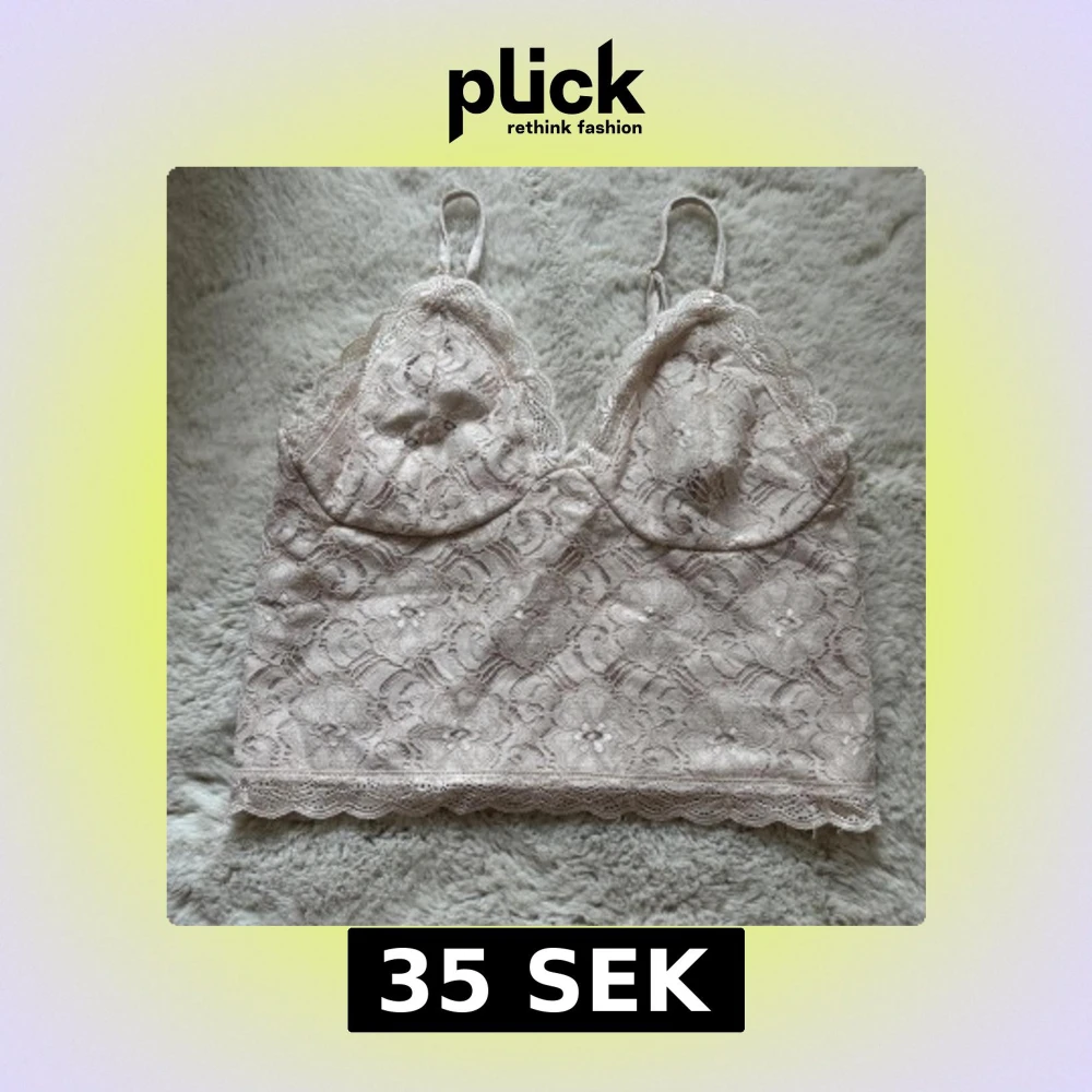 Säljer ett vackert beige spetslinne med justerbara axelband. Toppen har ett blommigt spetsmönster och en elastisk rygg för extra komfort.
