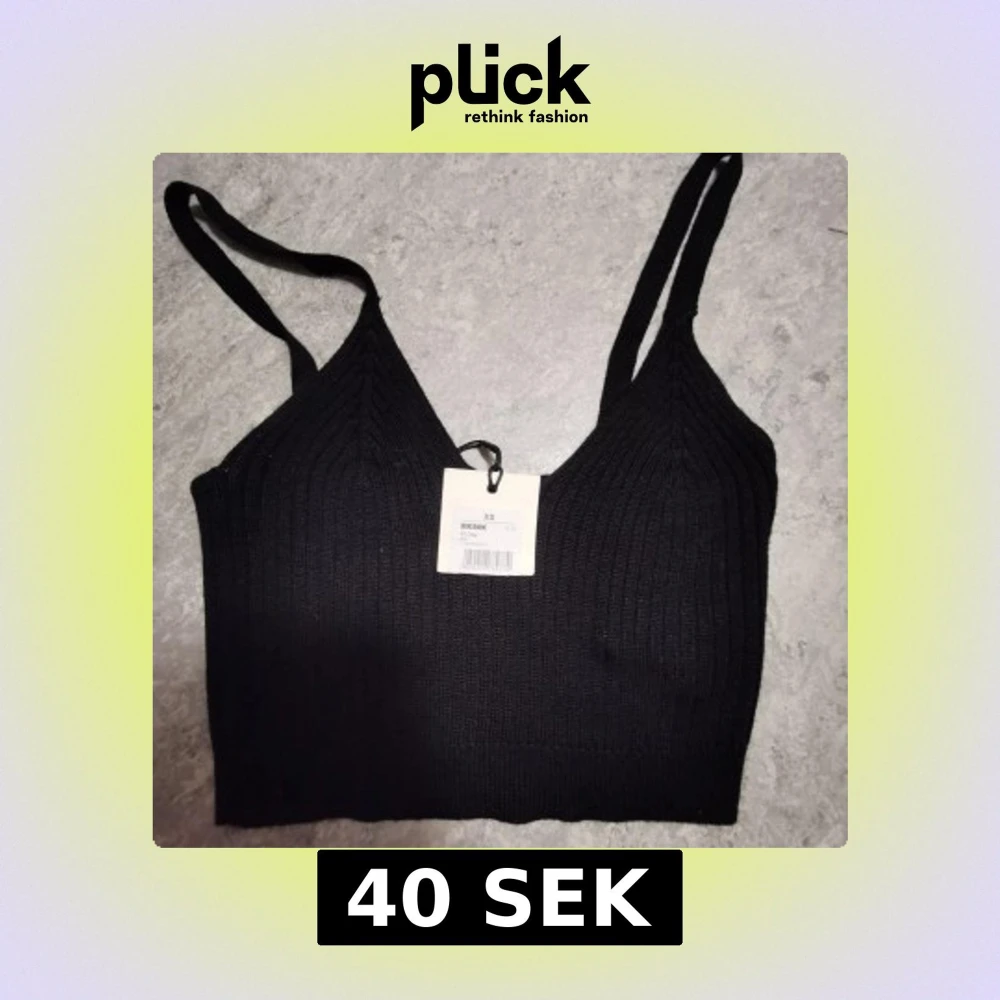 Svart ribbad linnetopp från Bik Bok med smala axelband och v-ringad hals. Toppen är croppad och har en tight passform som framhäver siluetten. Perfekt att styla med höga jeans eller kjol för en trendig look.