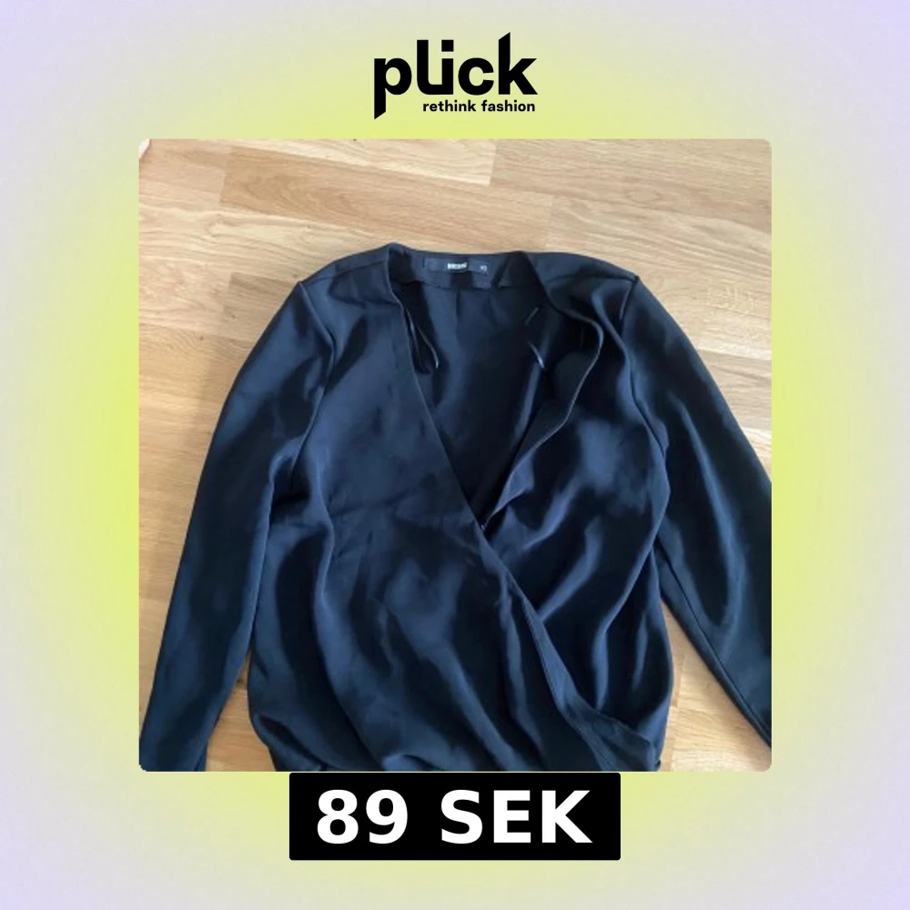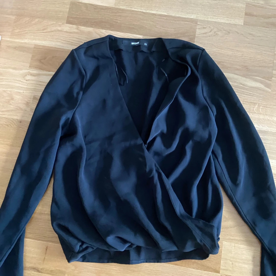 Svart omlottopp från Bik Bok med lång ärm och djup v-ringning. Tunnare material och stilren design som passar perfekt till många olika outfits.